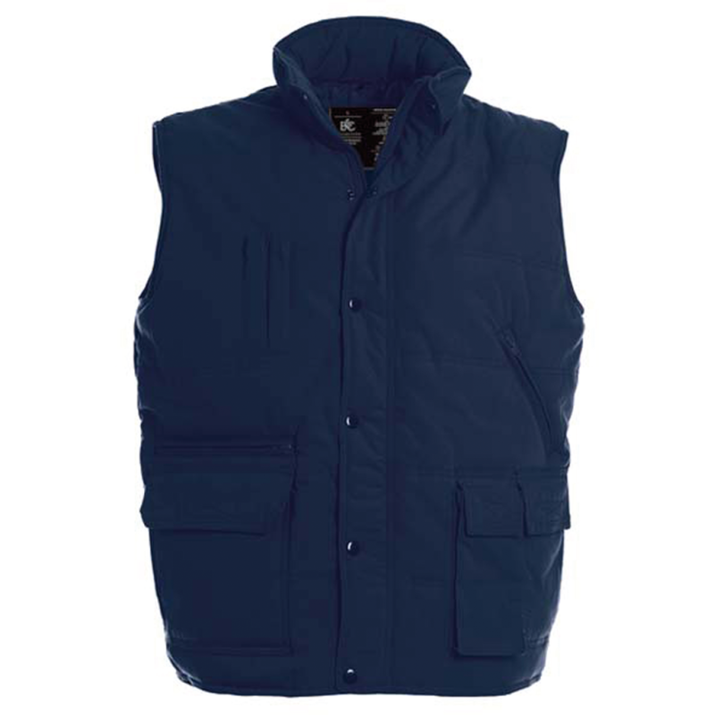 Outer layer: 65% polyester/35% cotton. Inner layer: 100% heavy padded polyester lining for extra warmth. Full zip front. Metal press studs. 4 outer pockets, including 2 with zip fastening. 2 extra outer pencil pockets. 1 inner wallet pocket. Longer back. Adjustable wind-stoppers in the armholes with elasticated cord and stoppers.