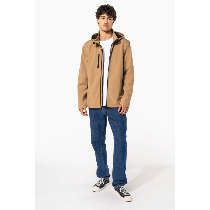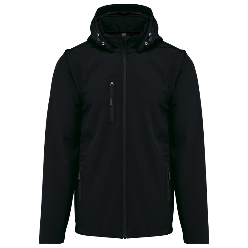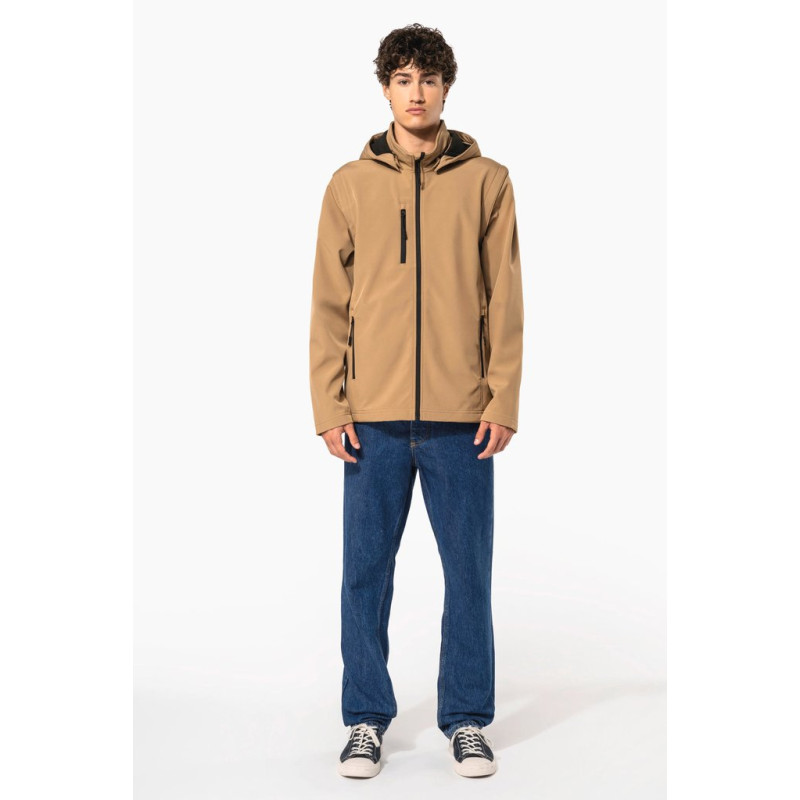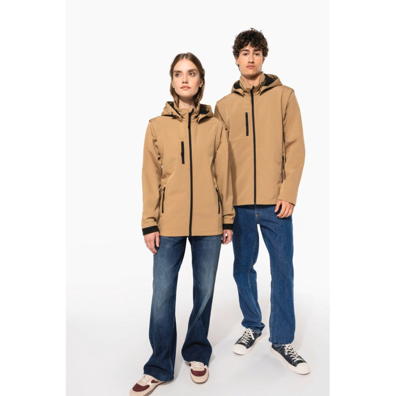 Unisex 3-layer softshell hooded jacket with removable sleeves