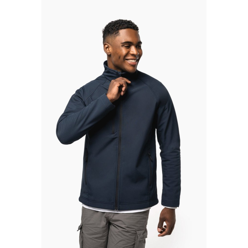 100% polyester. Made from 100% post-consumer recycled polyester. 3-layer bonded polyester fabric, waterproof 8,000 mm and breathable 3,000 g/m²/24 h. Outer: 100% polyester. Intermediate layer: waterproof and breathable inner membrane. Inner: 100% polyester microfleece. Straight fit. 2 zipped outer side pockets with zip pullers + 1 zipped chest pocket with zip puller. Hanging loop inside neck. Pocket bags as inner pockets. Zip fastening with zip puller. Twin-needle finish at hem.