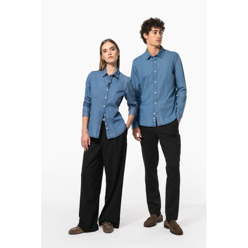 100% cotton. Denim-effect light fabric. Soft and comfortable fabric. Straight fit. Decorative inner collar band. Contrast buttons. Adjustable cuffs. This product has been specially treated and appears intentionally aged. This manufacturing process results in colour variations between products and makes each piece unique.