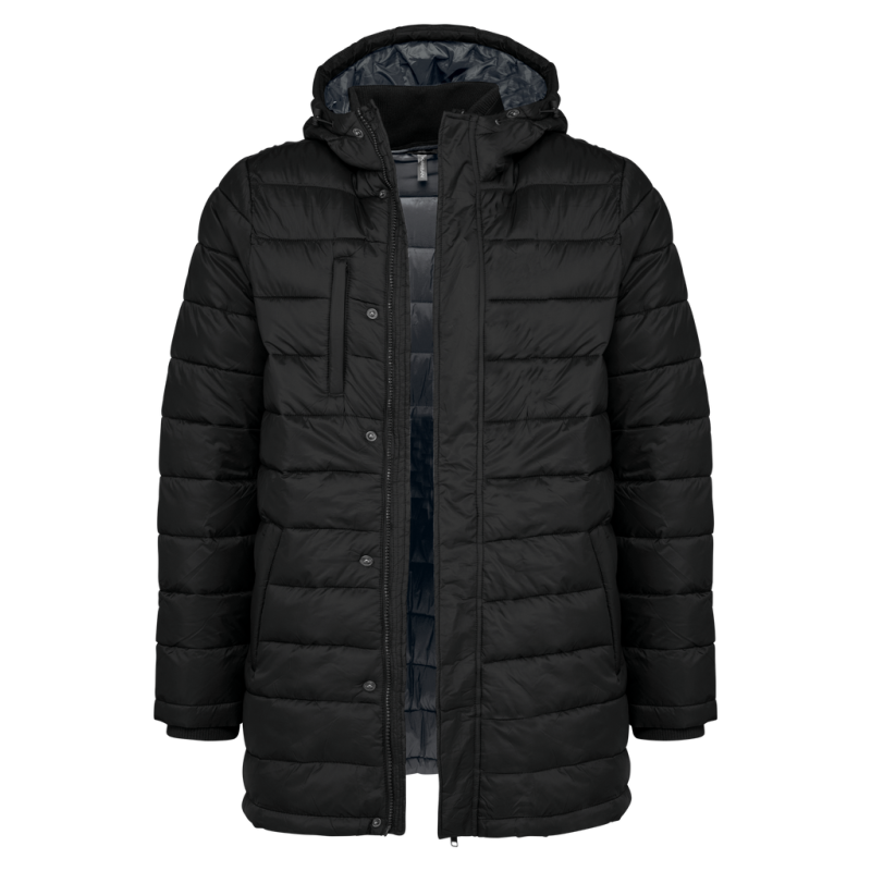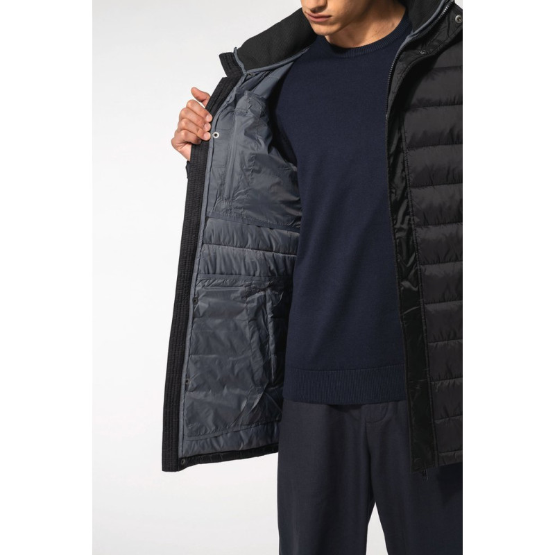 100% polyamide. Polyester inner padding. Warm and ultra-lightweight. Zipped and piped 2 front pockets and 1 chest pocket. Two-way zip fastening concealed beneath studded placket. Ribbed inner neck and cuffs. Contrasting inner hood and body: Convoy Grey for Black. Inner hood and body in matching tones: Navy for Navy. Injected padding: the weight may vary depending on the areas of the garment. Total weight is indicative.