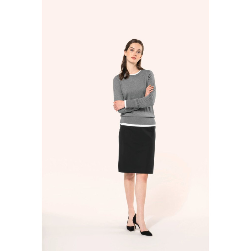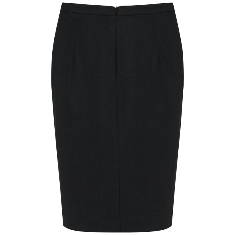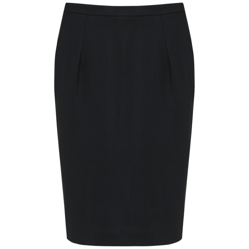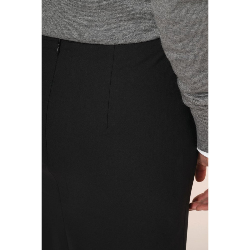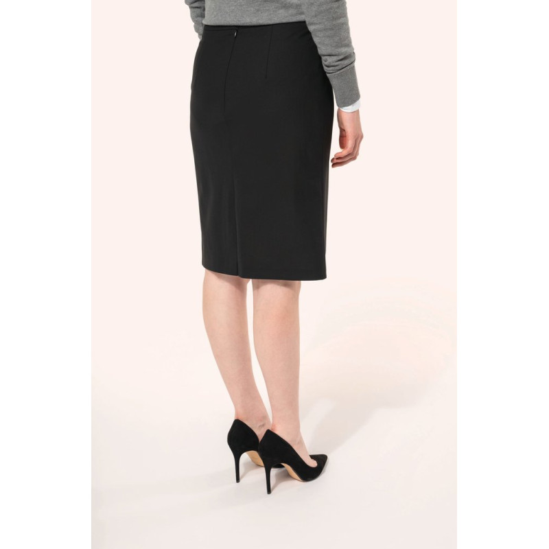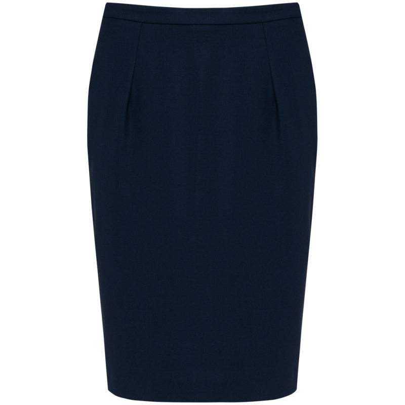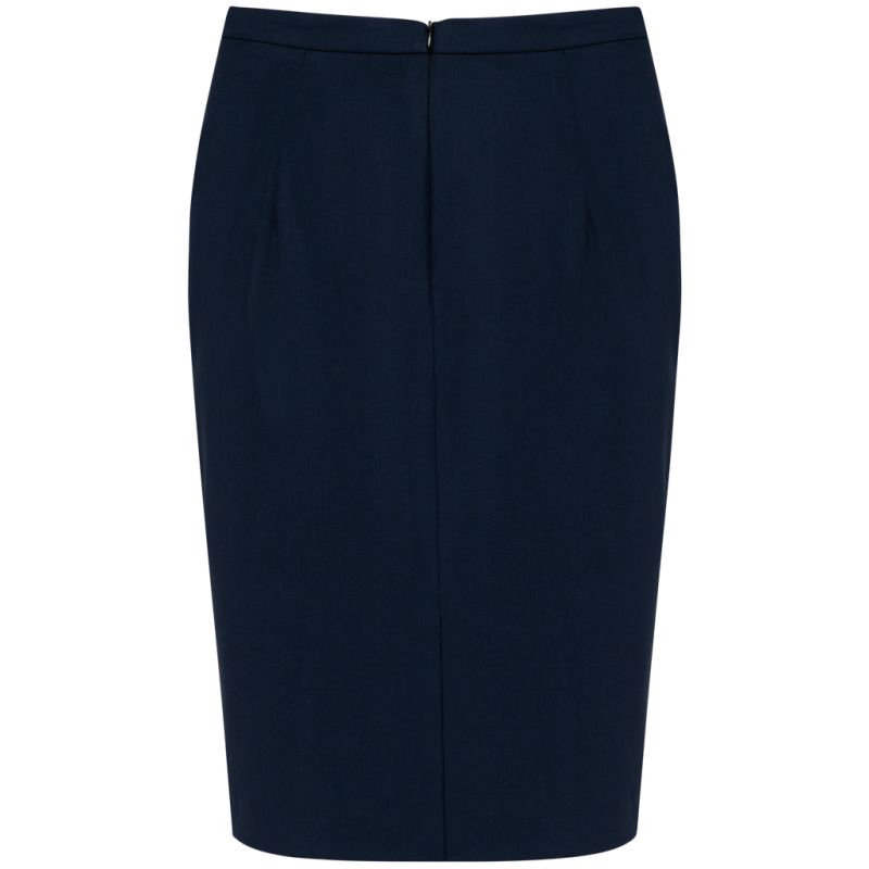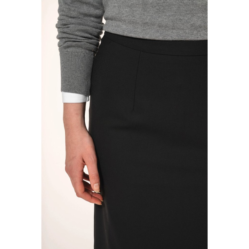 50% polyester / 23% viscose / 22% wool / 5% elastane. 100% polyester stretch lining. 2 front darts at the waist and 2 darts at the back. Zip opening at the back, protected inside by a fly tab facing held by a button for added comfort. Slit at the back hem, ruffled lining with slit. Straight fit. No brand label, only size tag for easy decoration access.