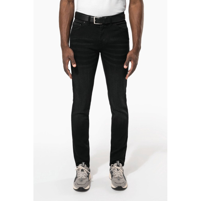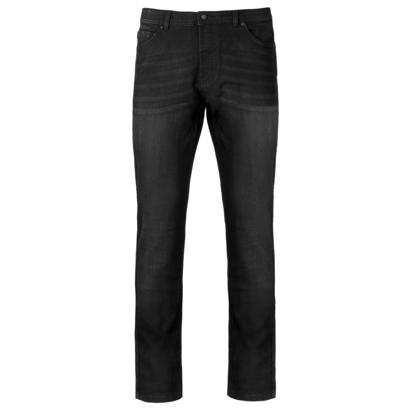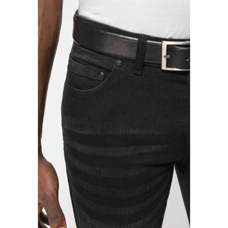 74% cotton / 25% polyester / 1% elastane. 13 oz. Zip fastening with matching metal button. 2 front pockets and 1 ticket pocket. Two patch pockets on the back. Matching seams. Slight stain effect. Waistband with loops. Straight fit. These jeans have been specially treated and appear intentionally aged. After a number of washes, a patina will form. This manufacturing process may result in colour variations between products which make each item unique.