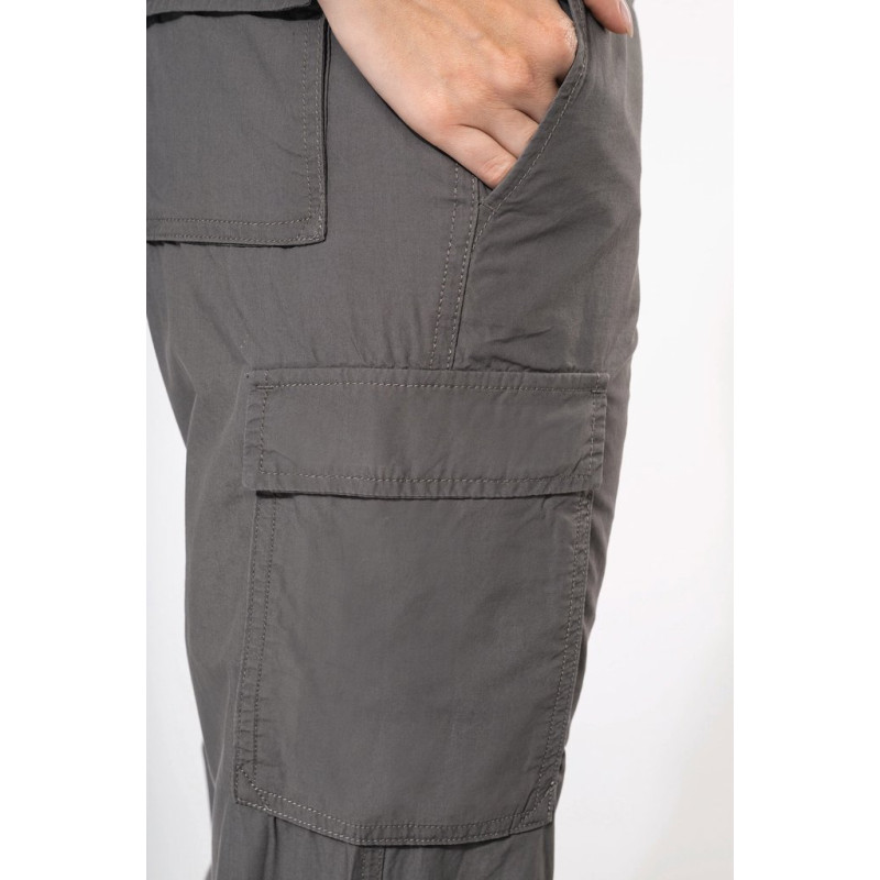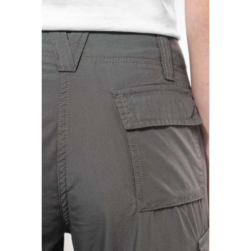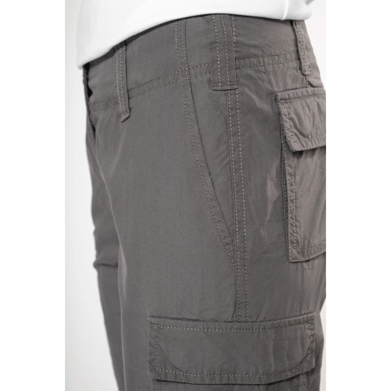 100% cotton poplin. Washed fabric for a soft and comfortable feel. Contrasting inner waistband with drawstring. Zip fastening and press stud. 2 Italian front pockets, including one with a coin pocket. 2 gusseted pockets with flap and press stud at back and sides. Knee yokes.