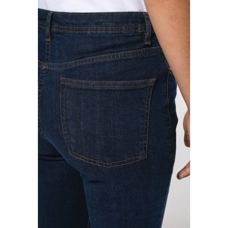 99% cotton denim/1% elastane. 11.50 oz. Modern fit. Zip fastening with one metal button. 2 front pockets, 1 ticket pocket and 2 back pockets. Waistband with loops. This product has been specially treated and appears intentionally aged. This artisan process may result in colour variations between products which make each item unique. No brand label, only a size tag for easy decoration access.