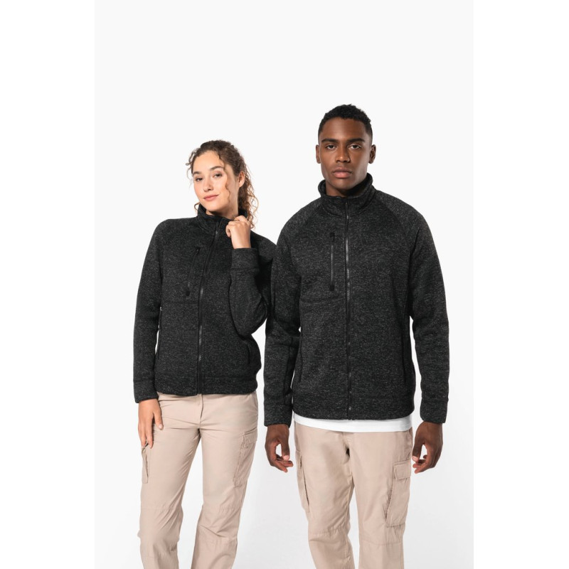 100% polyester inner brushed knit. Raglan sleeves. Zip fastening. 2 contrasting zipped front pockets and 1 contrasting zip chest pocket. Coverstitching on panels. Relaxed fit and comfortable fabric.