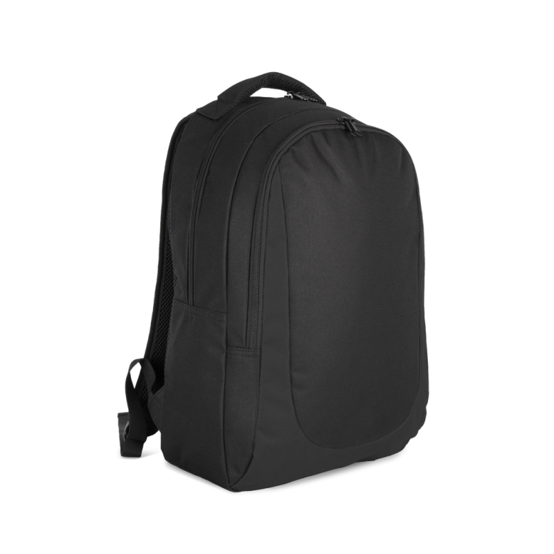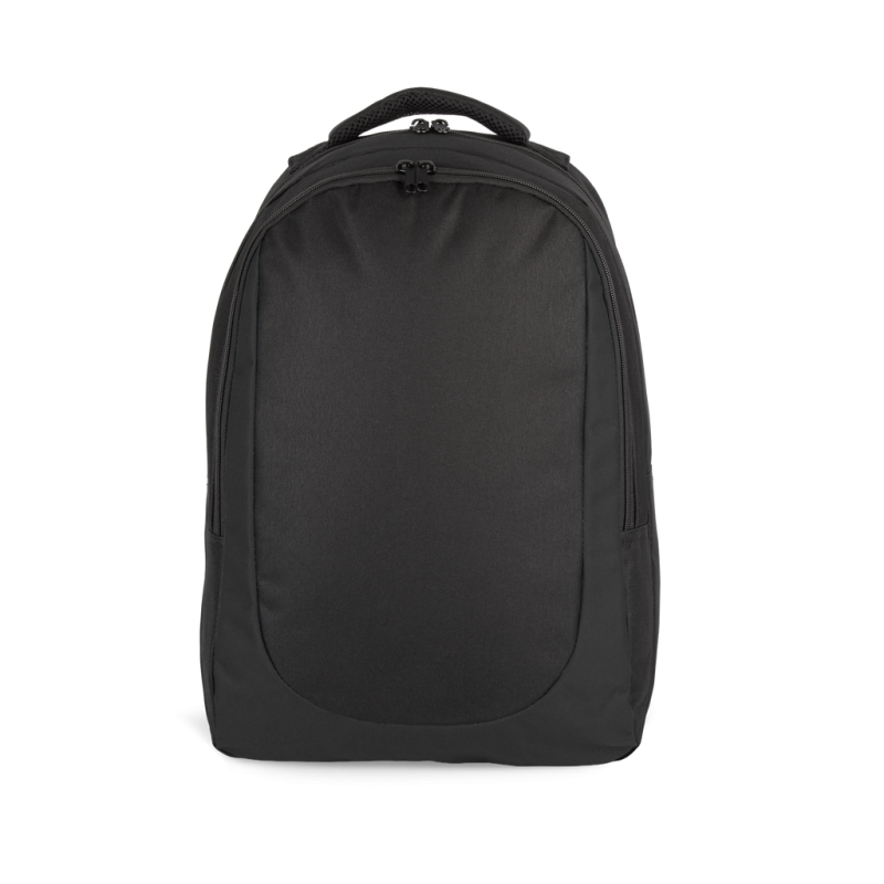 100% polyester. Two-tone front panel. Large main compartment with double zip closure. Deep front pocket with double zip, ideal for customisation. Ergonomically designed padded straps with reinforced seams for extra strength. Padded back with breathable mesh. Padded, breathable top handle with reinforced seams.