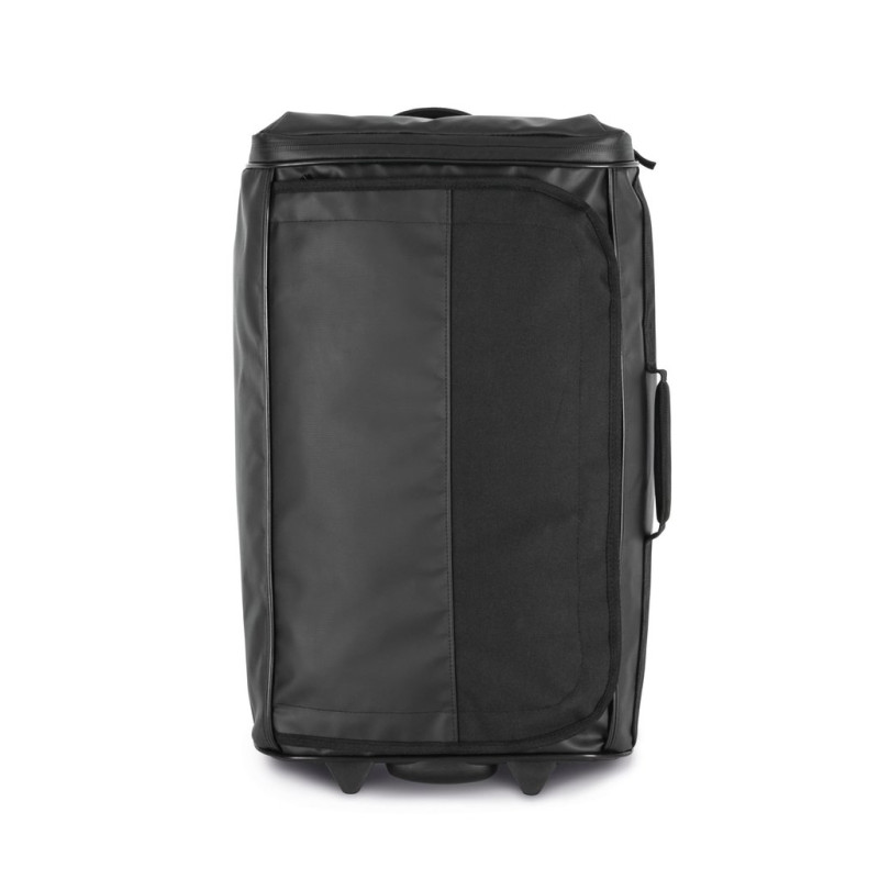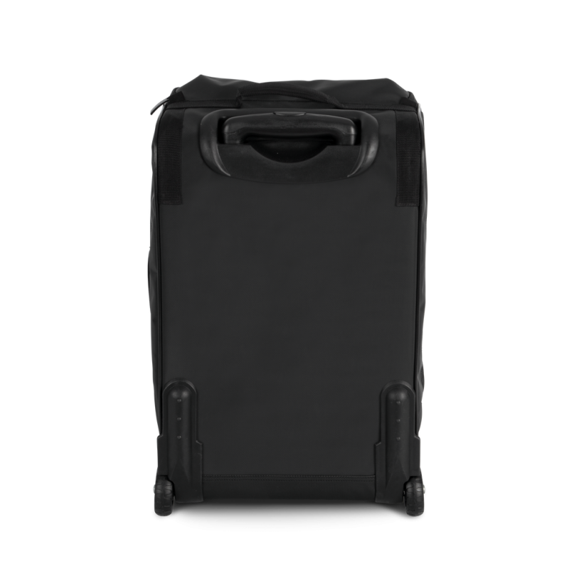 100% polyester / 100% PVC. Cabin-size trolley bag in polyvinyl chloride and polyester. It is made entirely from waterproof materials with waterproof zip fastening.Practical, it consists of a shoe-storage pocket on the side and a large main compartment with an inner mesh pocket with zip fastening.To make it easier to carry, it has a handle on the top and on the side.This sturdy bag has been designed with protective backing on the corners and a protective material on the base and back of the trolley. Its semi-rigid base includes a plastic handle that serves as a foot.