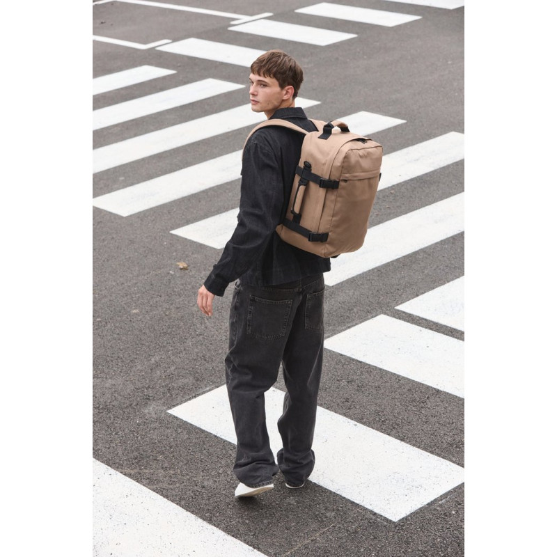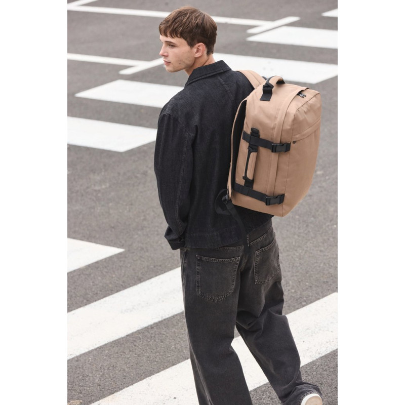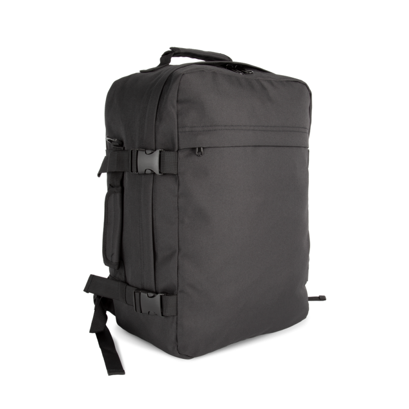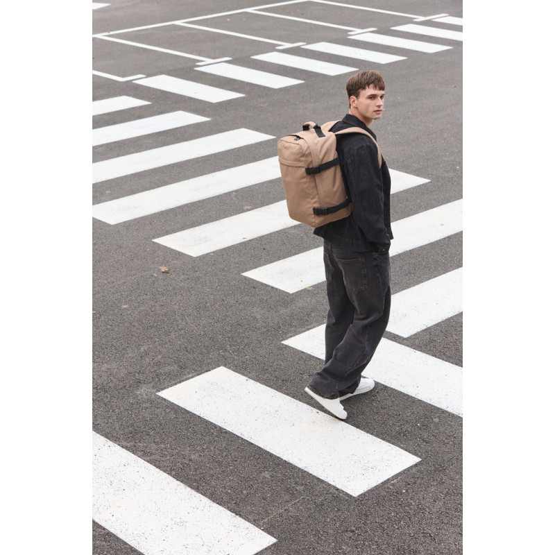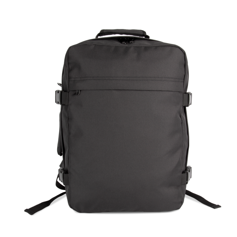 100% polyester. Carry-on size travel backpack. Flat opening with zip fastening for the easy storage of clothes. Padded top and side handles for easy transport. Ergonomic, breathable, padded straps and back for optimum comfort. Large zipped outer pocket, ideal for customisation. Two internal storage pockets on the front panel. Large zipped inside pocket on back panel, perfect as a second compartment. Buckles with compression straps on side panels.