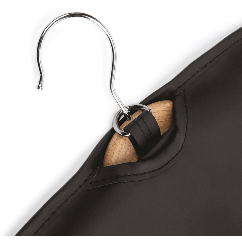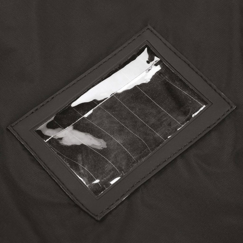 210D polyester. Hanging loop for folding. ID window pocket. Full length zip closure.