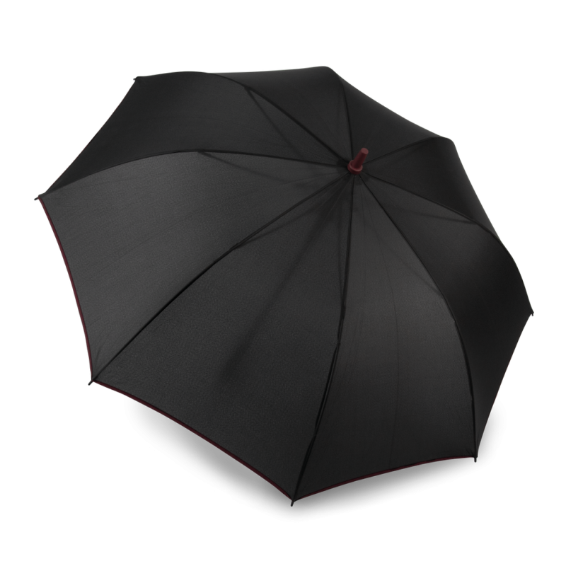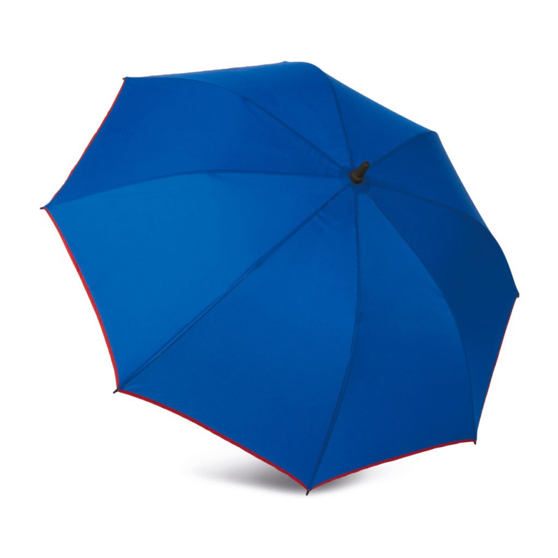 100% polyester. Large golf type umbrella with automatic opening. Consists of a metal shaft measuring 14 mm, a fibreglass frame and coloured polycarbonate tips. The canopy is made from polyester pongee. Panel edges, handles and shaft in contrasting colour