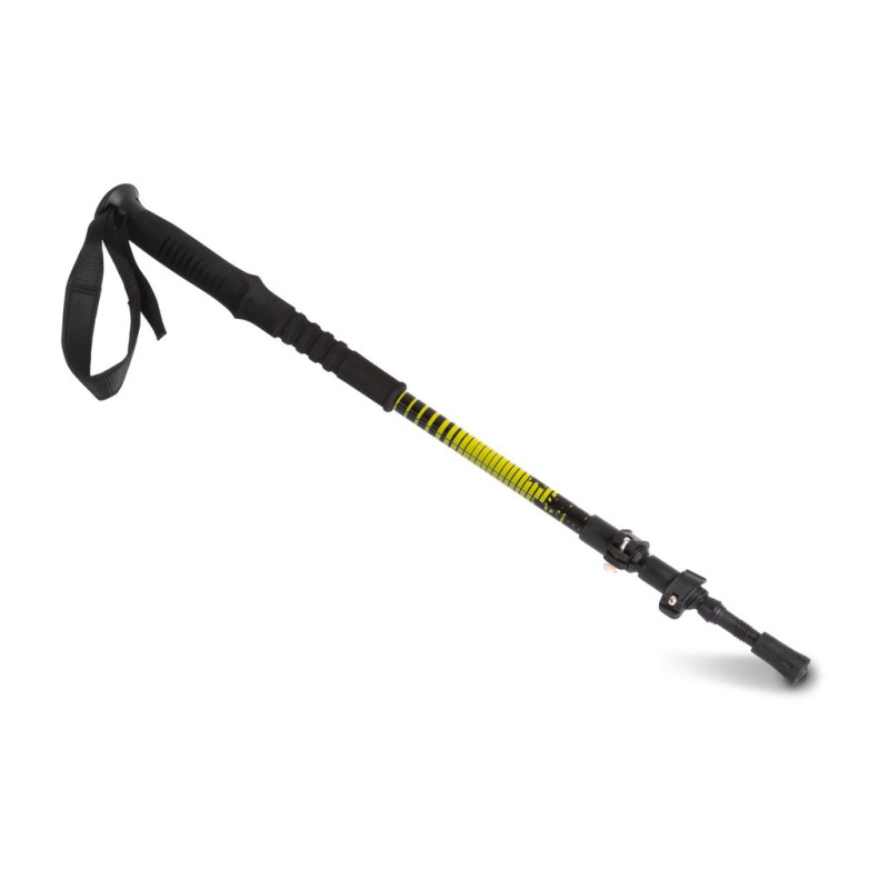 100% aluminium. Ultra-light aluminium 6061 telescopic trekking pole.This pole consists of a telescopic length structure with a safety blocker. Its steel tip with rubber cover is ideal for Nordic walking on hard ground. Its ergonomic handle can be extended to 27 cm and provides added grip even on particularly steep paths.The adjustable strap allows freedom of movement for the arms. Sold individually.