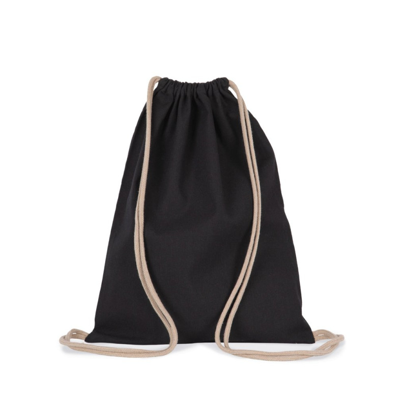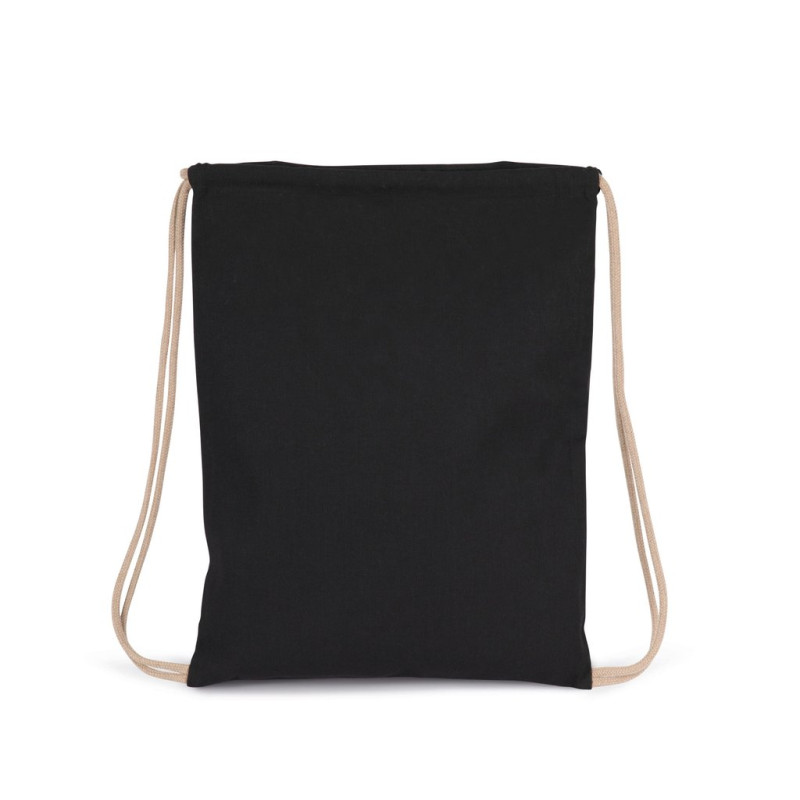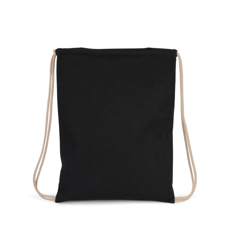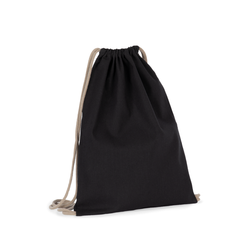 Cotton / polyester. Small drawstring bag made from 67% recycled cotton / 30% recycled polyester / 3% other fibers (Black Night), 75% recycled cotton / 22% recycled polyester / 3% other fibers (Ecume, Horizon Blue), 75% recycled cotton / 20% recycled polyester / 5% other fibers (Flint Grey). Drawstring fastening with a thick cord. Available as a kid version (KI5103).
