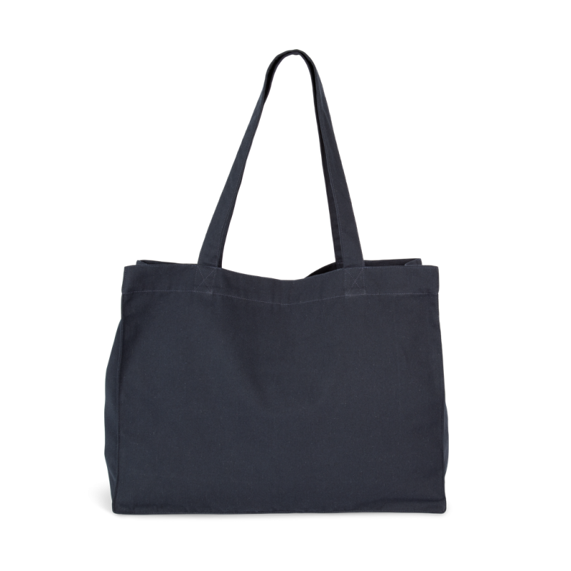 Recycled cotton / recycled polyester. 73% recycled cotton / 25% recycled polyester / 2% other fibres (White Jhoot), 60% recycled cotton / 38% recycled polyester / 2% other fibres (Oxford Grey Jhoot), 70% recycled cotton / 28% recycled polyester / 2% other fibres (Black Jhoot), 70% recycled cotton / 30% recycled polyester (Navy Blue Jhoot). Large rectangular shopping bag with handles in the same fabric as the bag. This bag is part of the “K-loop” project. With this project, Kimood is literally closing the loop of the circular economy. The cotton used comes from waste generated in the production of cotton items for the Kariban brand, and the KARIBAN BRANDS range.The added polyester comes from recycled PET plastic bottles. During the recycling process, tracers are added to the yarn in the form of viscose and ceramic filaments to act as a unique digital fingerprint. The tracers reflect light in a unique way and therefore carry a clear and tamper-proof code. This allows us to unequivocally store in a blockchain all the information from the processes the yarn has been subjected to. Thanks to the Aware™ tracer technology and associated blockchain platform, Kimood allows the end consumer to track the entire production process. This guarantees that the product has been recycled using its own waste, with no possible alterations in the process. A special label with a QR code provides access to the Aware™ platform for direct authentication of certifications using a smartphone.