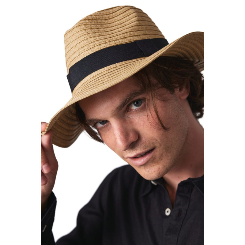 92% paper fibre / 8 % polyester. Borsalino-style hat with 7 cm brim. Sold without ribbon. KP609 ribbon must be ordered separately in the corresponding size.