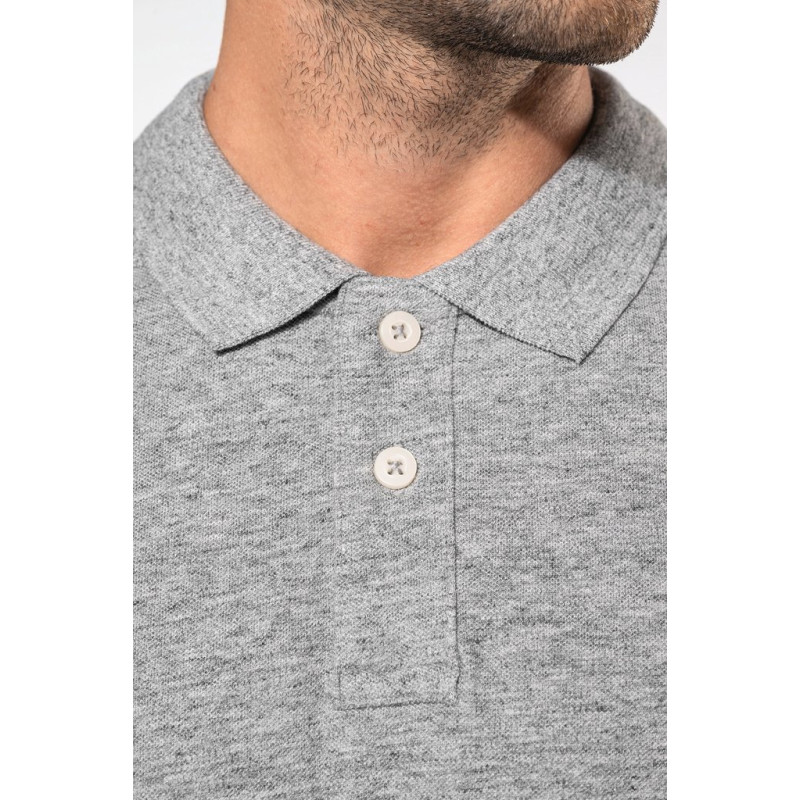 100% cotton (Ash Heather : 98 % cotton / 2 % viscose). "Vintage" look piqué knit. Ribbed neck. Double herringbone twill taped neck and side slits. Placket with 2 contrasting buttons. Twin needle finish at hem and ribbed cuffs. This product has been specially treated and appears intentionally aged. This manufacturing process results in colour variations between products and makes each piece unique. No brand label at neck, only size information for easy relabelling.
