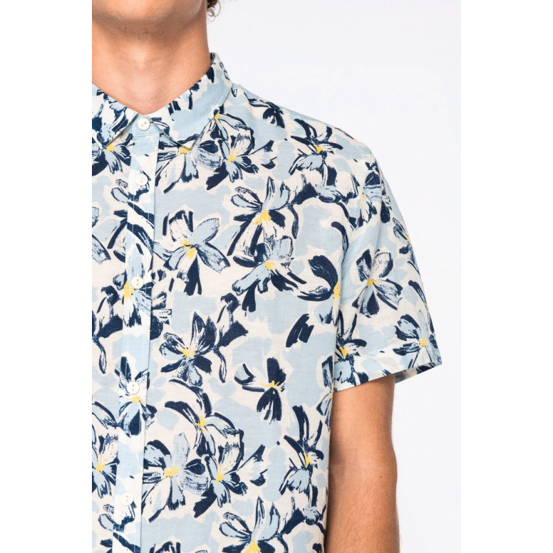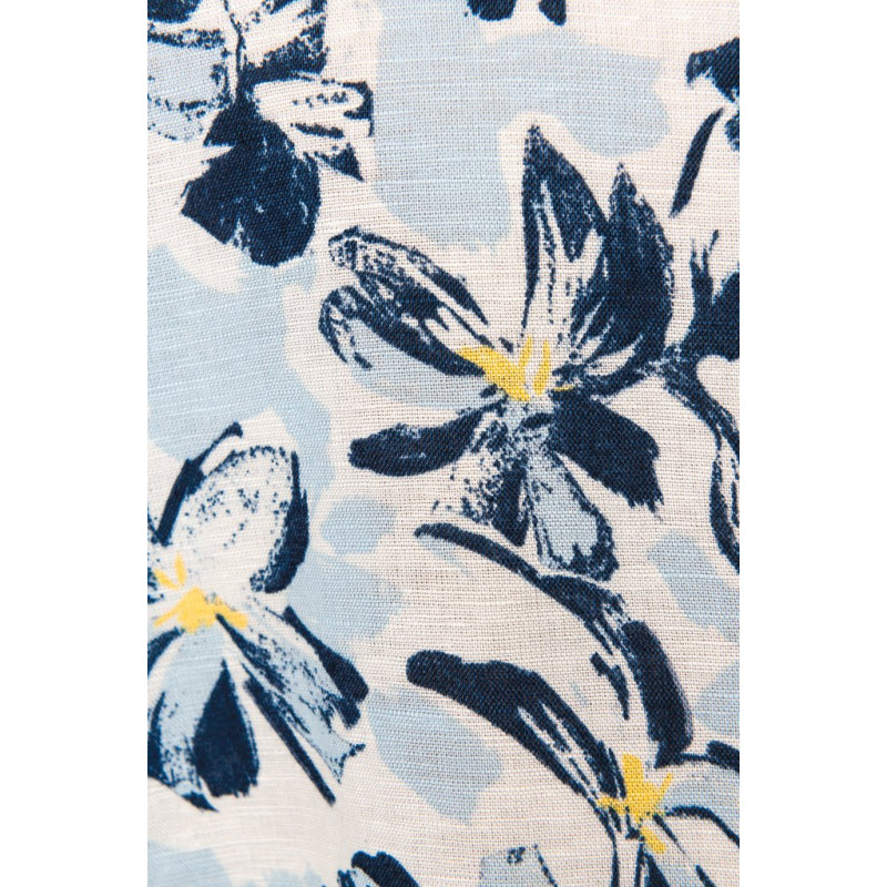 62% linen / 38% organic cotton. Woven. Straight fit. Side stitching. Shirt collar with collar stand. Added placket with contrasting buttons. Lined back yoke. Woven with continuous printed pattern. Double overstitched seams on shoulder and under the sleeves. Twin needle finish at cuffs and hem. Garment washed after assembly: colours may vary from item to item.