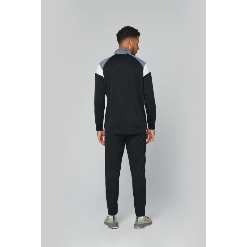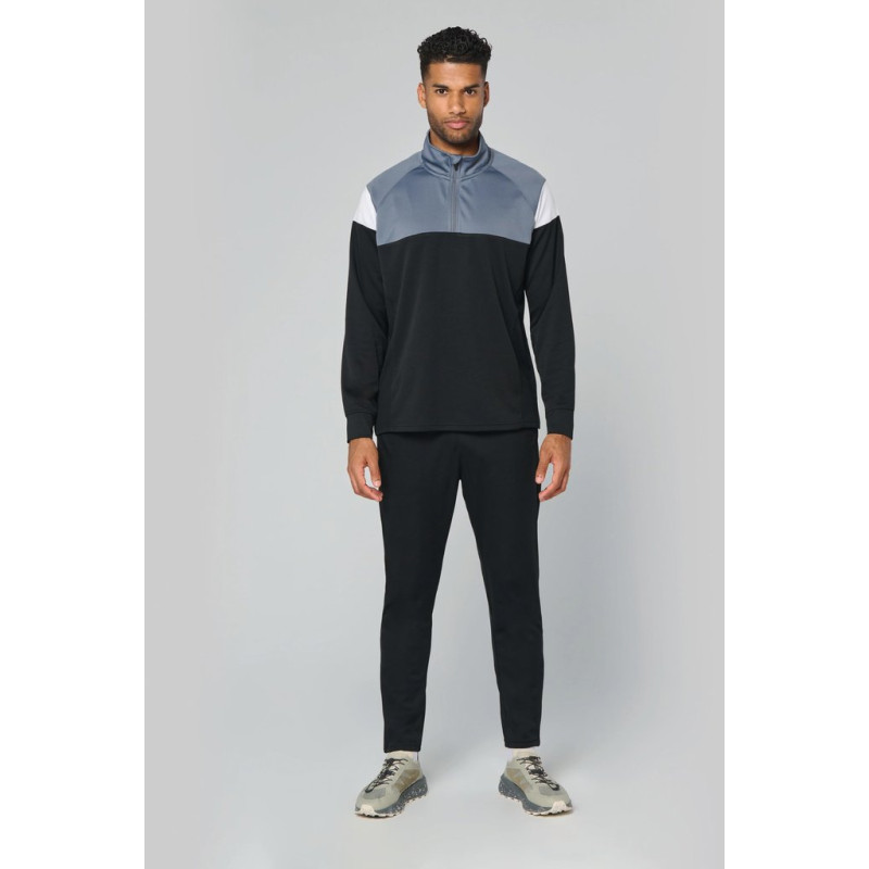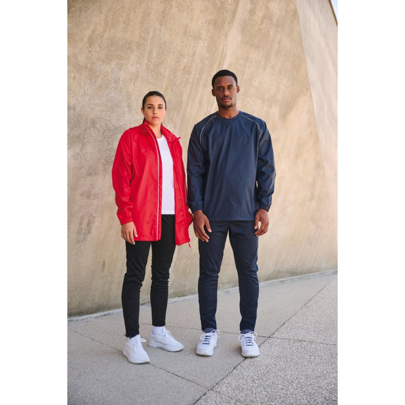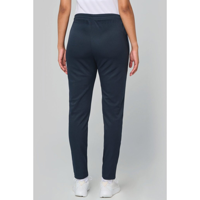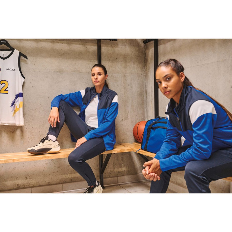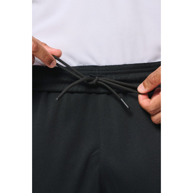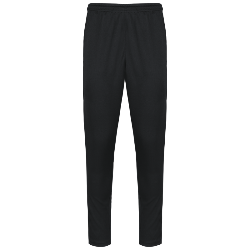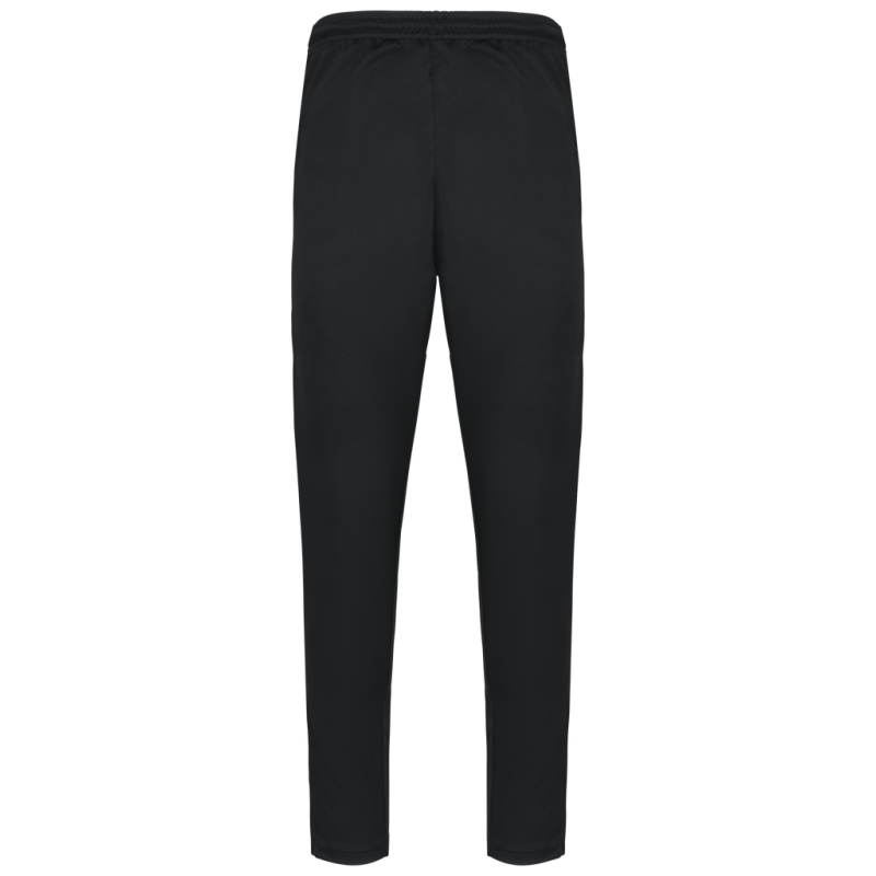 100% matte polyester interlock. Slim fit. 2 zipped side pockets. Elasticated waistband with round drawstring and rubber tip on the inner waistband. Zipped leg hems with twin-needle finish Detachable brand label for easy decoration access.