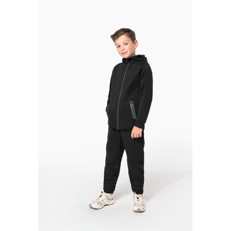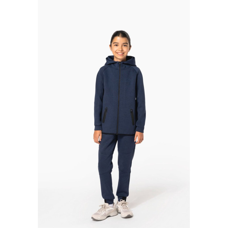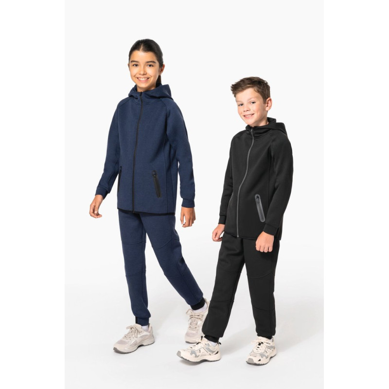 94% polyester/ 6% elastane (79% polyester/ 15% viscose/ 6% elastane for marl colourway). Extremely comfortable fabric. Modern straight fit with knee patches. Elasticated waistband with two-tone drawstring with plastic tip. 2 front pockets with jersey (65% polyester / 35% viscose) and 1 back zip pocket with heat-sealed finish. Tightened leg hems with contrasting black elastic.