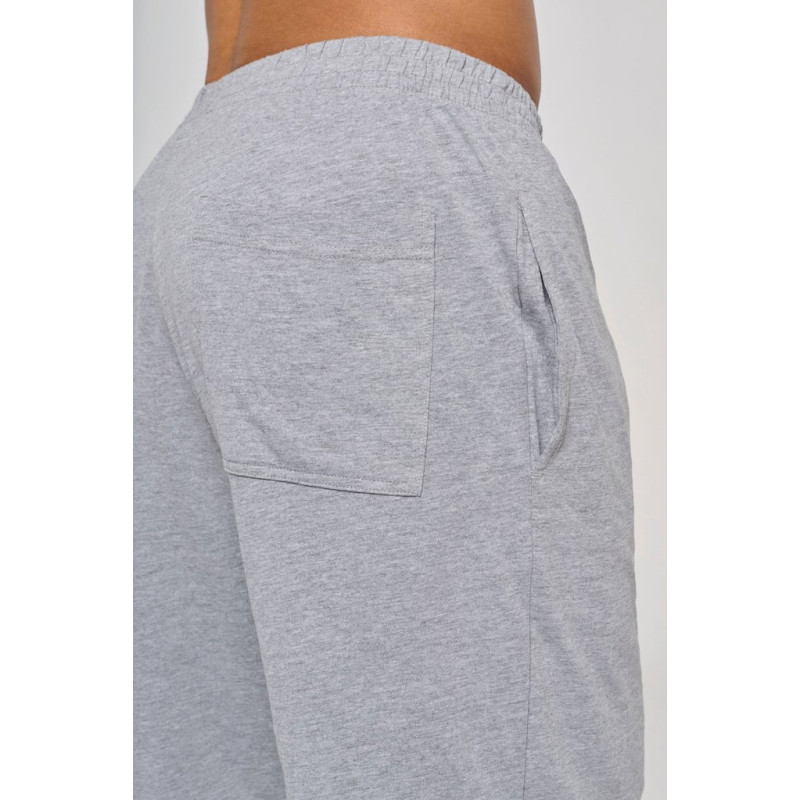 100% low shrinkage cotton (Oxford Grey : 90% cotton / 10% viscose). 2 side pockets. 1 back pocket. Elasticated waist. Twin needle finishing at the hem.