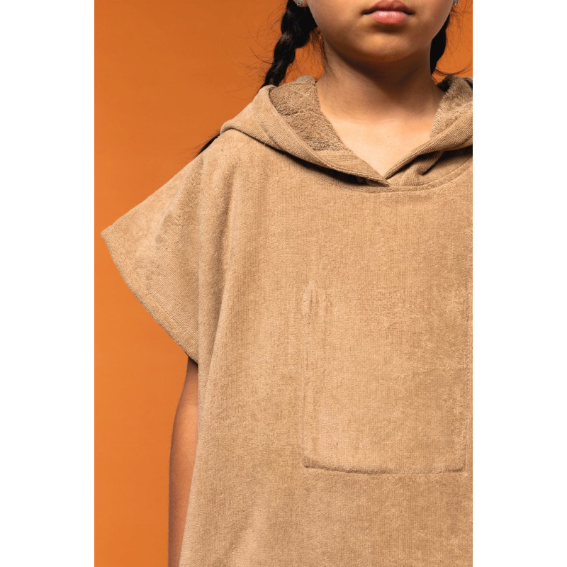 100% cotton. Made from 100% organic cotton. Terry fabric. Front crossed hood. Large open central pocket inside garment. 2 side openings at mid-height to facilitate dressing and undressing. 2 side slits with reinforced seams. Half-moon finish at the neckline to facilitate decoration access inside. Tear-away brand label.