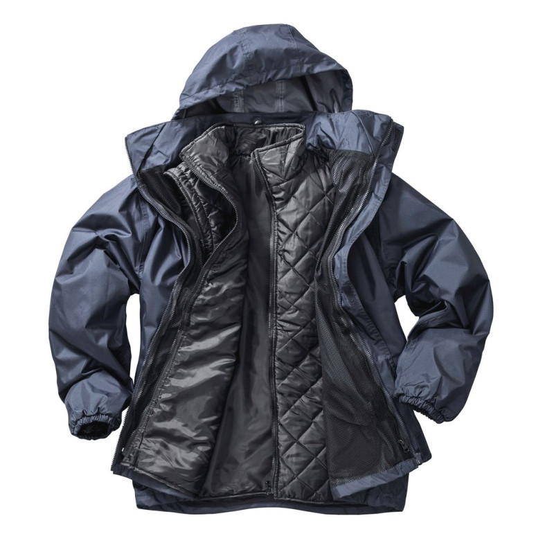 Waterproof jacket/windbreaker outer: 100% 190T polyester, with StormDri 2000 coating. Lining: polyester mesh. Sleeve lining: 100% polyester taffeta. Fully taped seams. Black colour inner across both outer colours. Inner bodywarmer: water-resistant. 100% diamond quilted 210T polyester. 140 gsm padding. Lining: 190T polyester taffeta. Stylish fit. 2 front pockets with storm flaps. Inside right chest pocket on outer jacket. Hood concealed inside the collar. Fully zipped. Elasticated easy tear cuff adjusters. Bodywarmer: 2 side pockets, Full length zip fastening. Easy care.