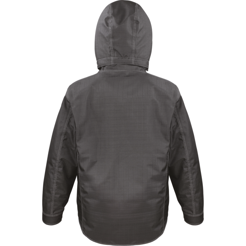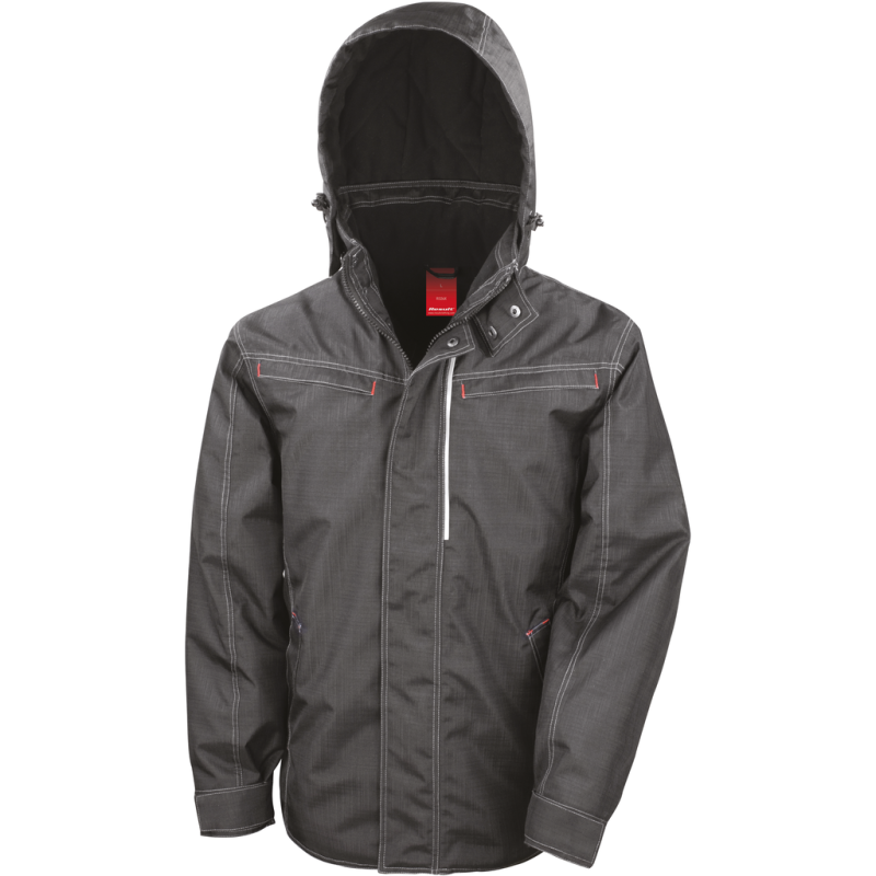 Outside parka: 100% 170 gsm textured polyester, partial fleece 100% polyester lining with 230 gsm padding. Windbreaker jacket. 3000 mm waterproof with taped seams. 2000 gsm breathable. Quilted Polartherm fleece lined. Heavy duty 2-way zip with interchangeable colour zip pulls. 4 outer zip pockets. 2 inner zipped pockets. D-ring to left chest pocket. Stand-up collar and removable hood. Longer back hem, adjustable hem. Adjustable cuffs with tear release fastening. Storm flap with press studs. Reinforced contrast stitching and retro-reflective details. Hang tag to back neck. Rugged look. Hardwearing.