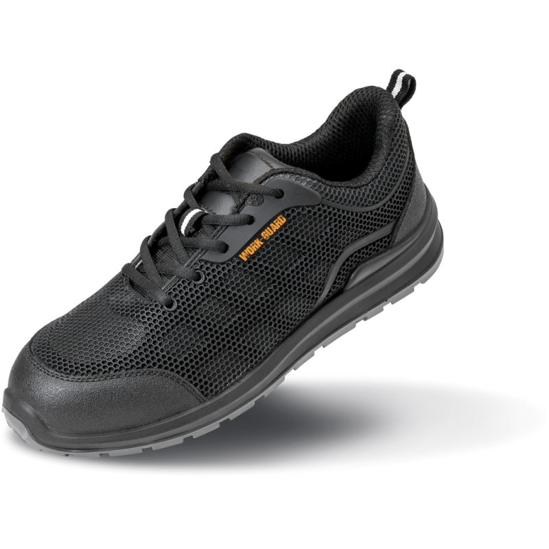 Upper: Thermoplastic PU w/water resistant leather trim. Midsole: N/A. Sole: Double density PU/PU. Toe cap: Steel. Padded tongue & collar. Energy absorption heel. Moulded PU scuff cap. SRA slip resistance. Spare insole set. Steel to ecap. Oil resistant. Hell loop. Lightweight. Ventilating mesh & lining wicks away moisture. CE EN 20345:2011 SRA SB; Breathable, Durable.