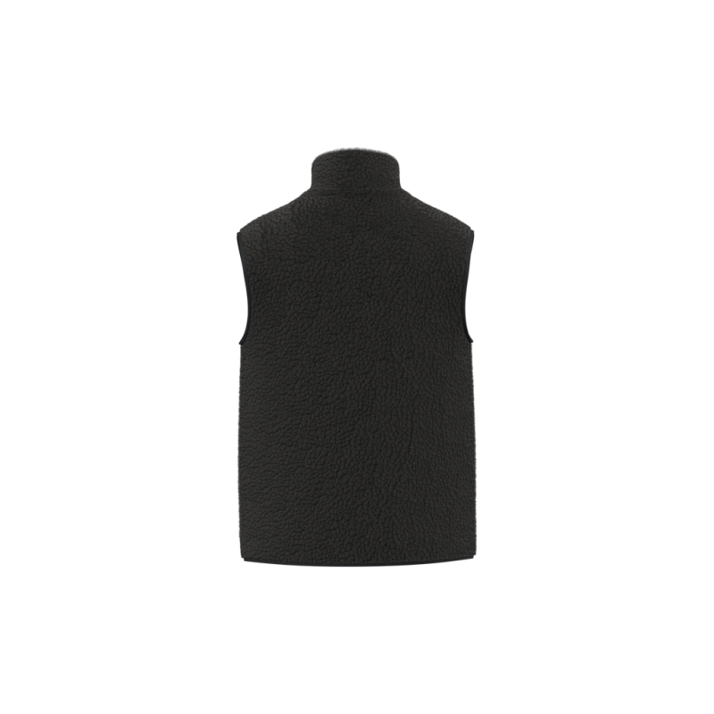100% polyester. Regular fit. Sherpa fabric with jersey main lining. Lined high collar in main material. Matching herringbone taped neck inside collar. Plastic zip with matching metal slider. Two piped front pockets. Matching bias trim on armholes and hem. Inner zip for customisation at bottom of garment.