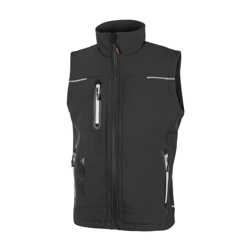 96% polyester/4% elastane. Vest in Softshell with U-Tex membrane that makes the fabric water resistant, breathable and windproof. Very comfortable and durable vest with a soft micro-fleece inner lining and waterproof central zip closure. Equipped with two front pockets closed with fl uo zip and adjustable antitangle drawstring inside. A mobile phone pocket on the chest with Free Sound technology closed with a fluo zip. Two large inside pockets. Shaped hem. Reflex tape on collar in the back. Tone-on-tone U-Power logo.