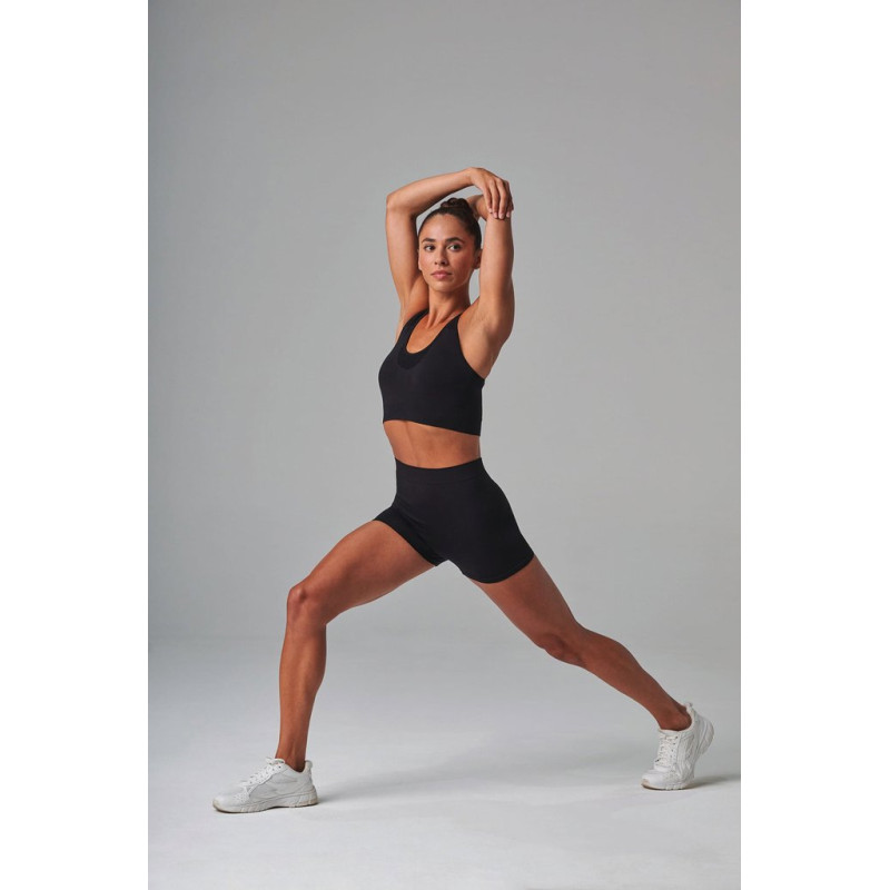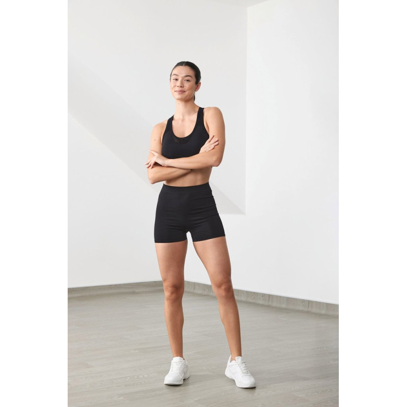 60% nylon/32% polyester/8% élasthanne. Fitted, high-waisted stretch shorts in melange fabric. Seamless knit for comfort. Tombo tear-out label.