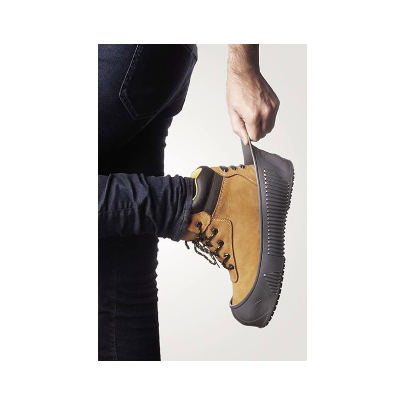 Anti-slip and specifically designed for safety and oversized shoes. Extendable structure: five sizes only for all shoe sizes. Hand wash or machine washable at 30°. Suitable for sterilising in an autoclave at 130°C. Reusable. FO. NF EN ISO 20347/2012. NF EN 13 287.