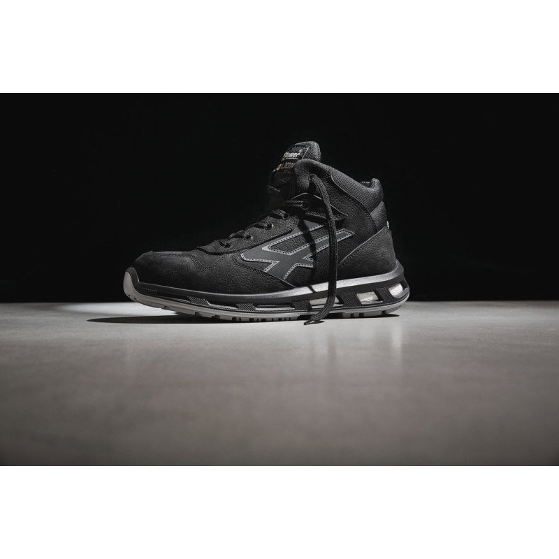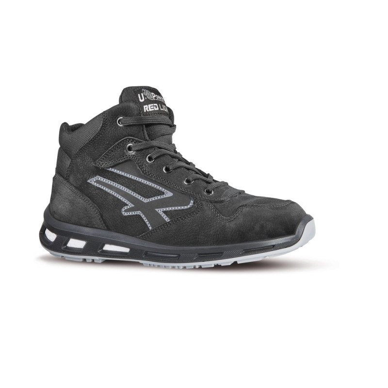 RedLion mid-rise safety shoes, with AirToe® aluminium toecap and non-metallic anti-puncture sole. Water-repellent nubuck leather upper and flexible polyurethane foam sole with Infinergy® system. Anti-abrasion, antistatic outsole in soft PU for grip, safety and stability. Wingtex® lining absorbs and wicks away moisture. Complies with EN ISO 20345 - S3 SRC CI ESD safety standards.