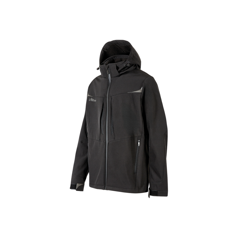96% Polyester / 4% Elastane. Innovative softshell work jacket with lightweight, hard-wearing graphene microfleece lining. Graphene ensures that heat is distributed evenly and provides comfort whatever the climatic conditions. Removable, adjustable hood with elasticated drawstring. Water repellent jacket with soft micro-fleece collar lining, drop hem adjustable from inside by drawstring.