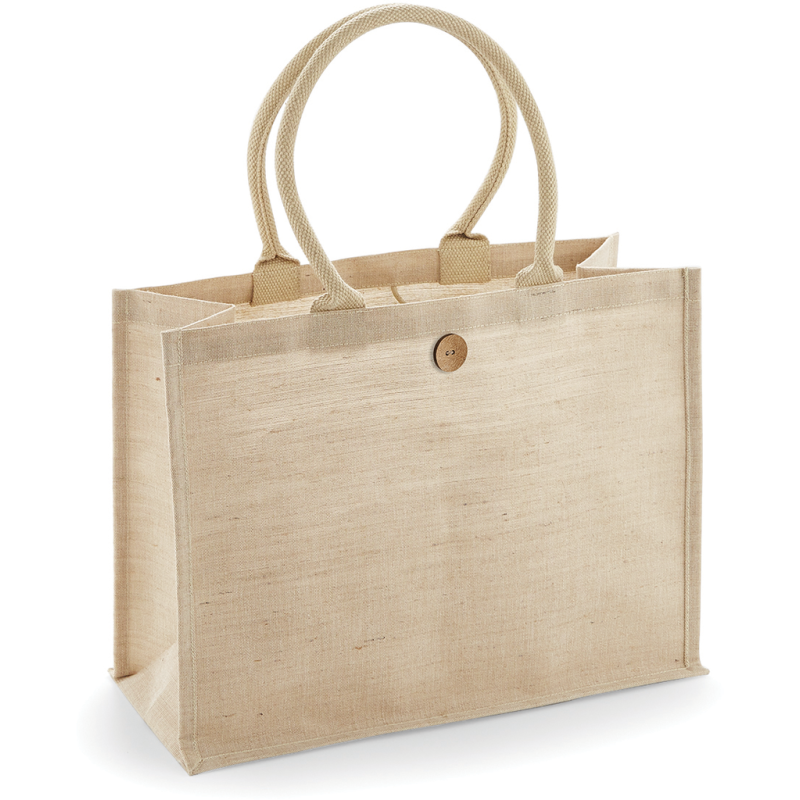 Laminated Juco (72% jute/28% cotton). Refined jute/cotton blend for ease of decoration. Cotton carry handles.
