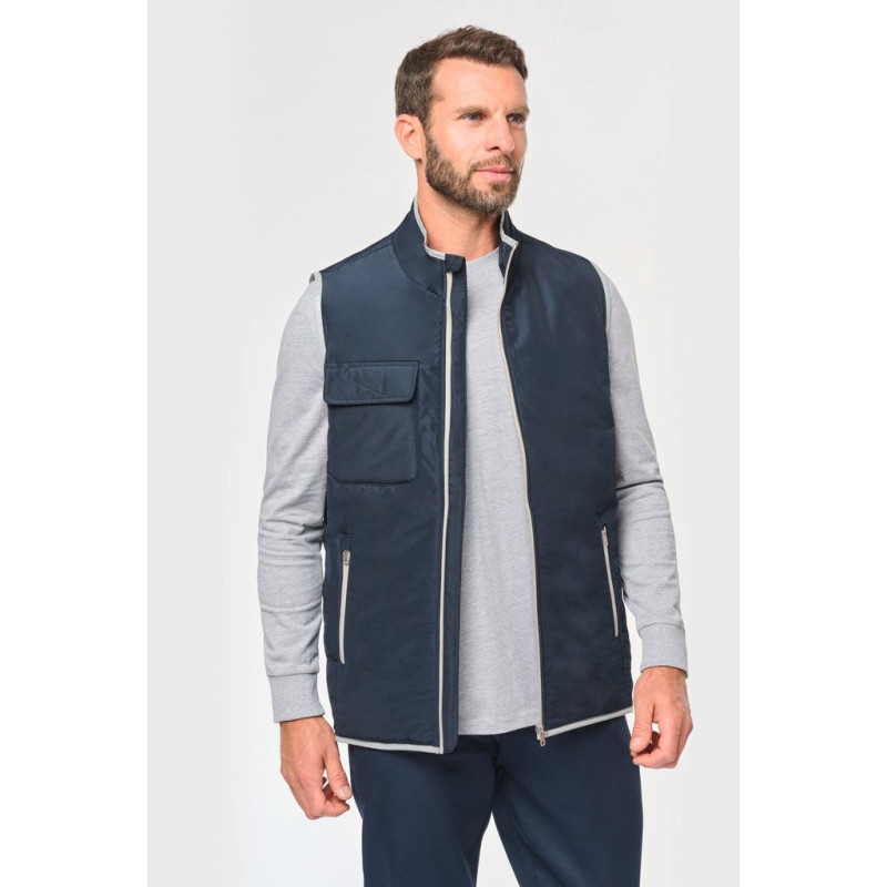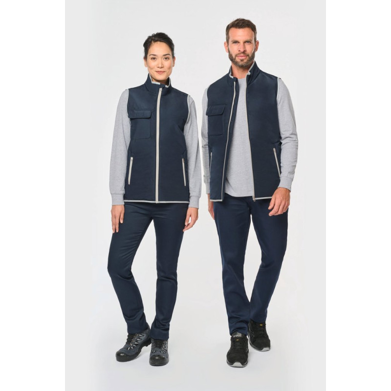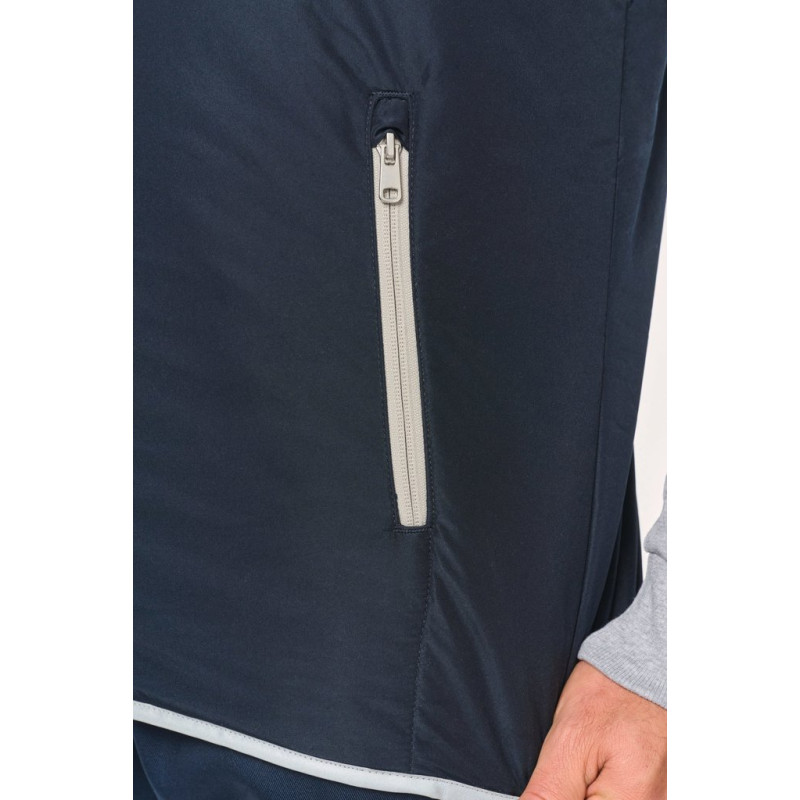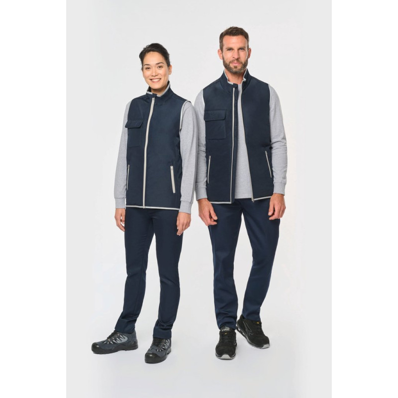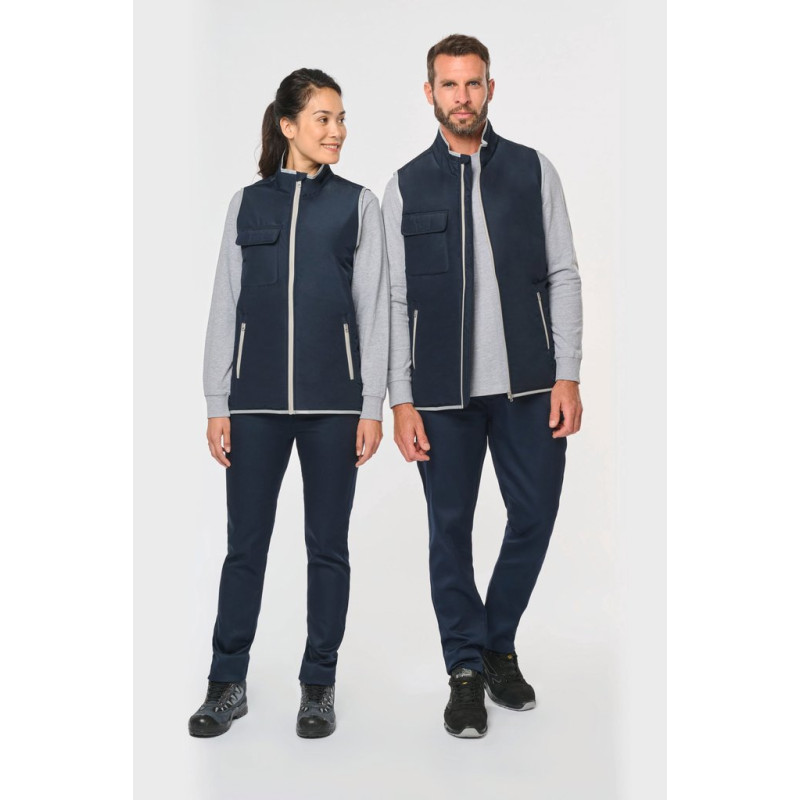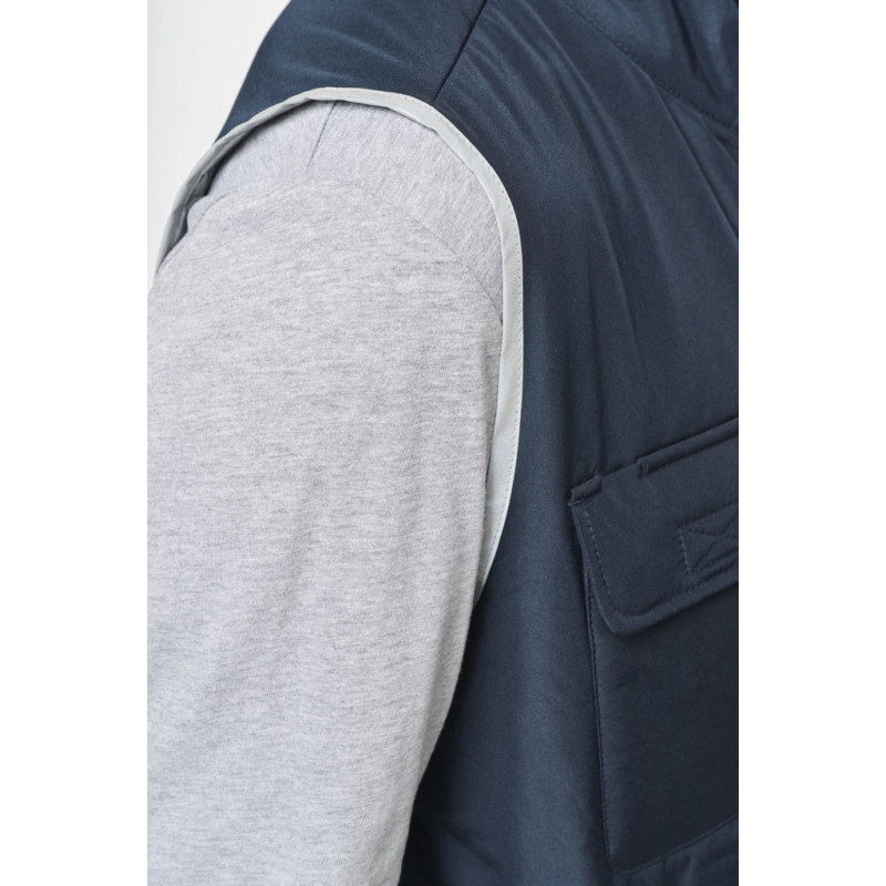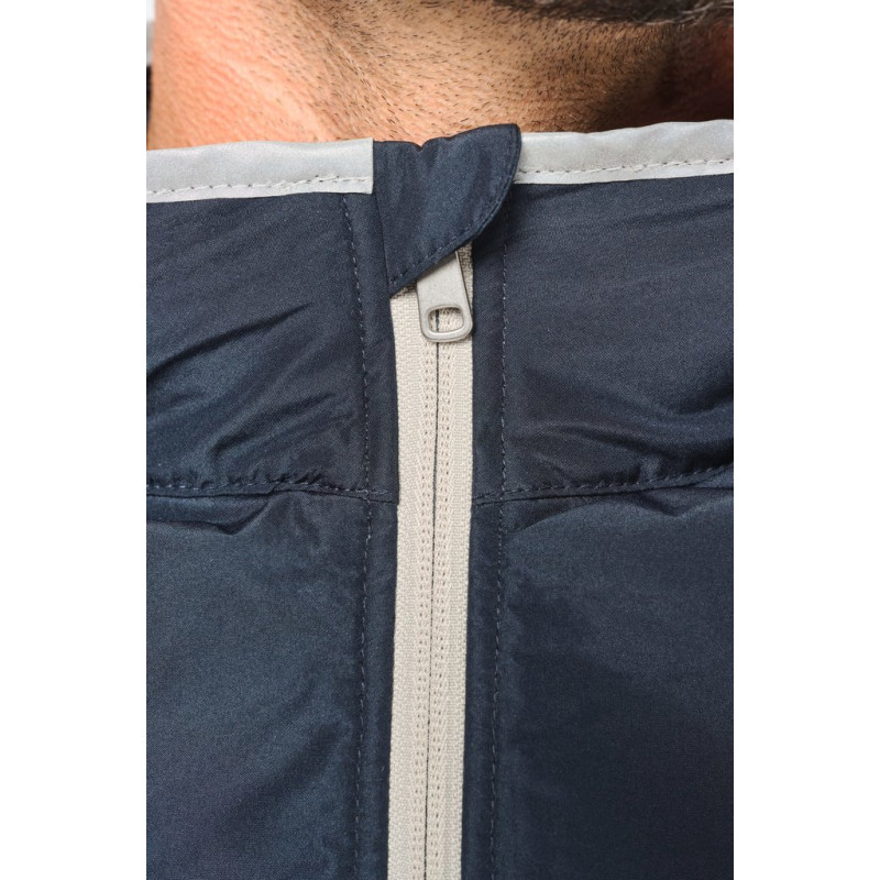 100% polyester. 4 layers: 240T taffeta outer. 60 gsm Polyfil. Silver PU membrane inside. Technical performance: 5,000 mm waterproofing and 5,000 wind resistance. Thermal resistance (ISO 11092-2014 Standard) RCT: 0.138 sqm k/w. Straight cut. Nylon zip fastening. 2 side zipped pockets. 1 chest pocket with flap and pen holder, reinforced seam, tear release fastening. Reflective binding on neckline, armholes and bottom hem. 2 large lower inner pockets. Name tag inside garment. Hanging loop inside neckline. Drop hem. Tear-off brand label for ease of relabelling.