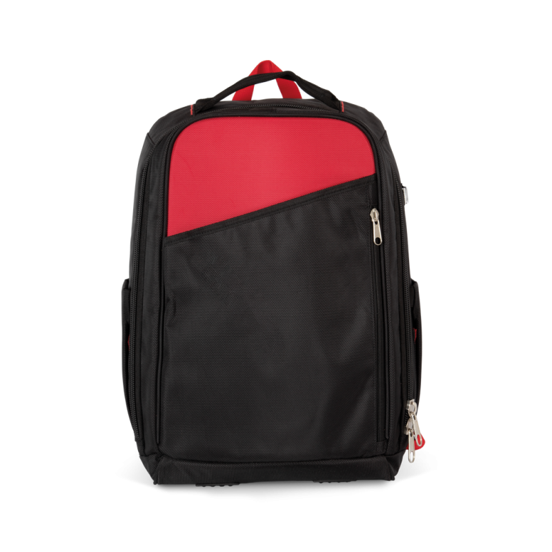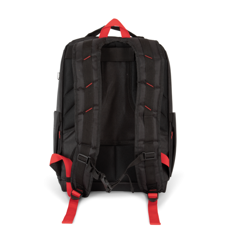 100% polyester. Backpack with reinforced structure to carry all your outdoor work tools with you wherever you go. Waterproof material. Padded laptop compartment, with reinforced side structure. Padded straps reinforced with a rigid band to withstand tool weight. Compartmentalised interior panel for storing work tools. Inner pocket reinforced with a mesh structure to store fragile tools with sharp edges. Large front pocket, 100% customisable. Top handle with safety seams to make lifting the bag easier when full. Side pockets