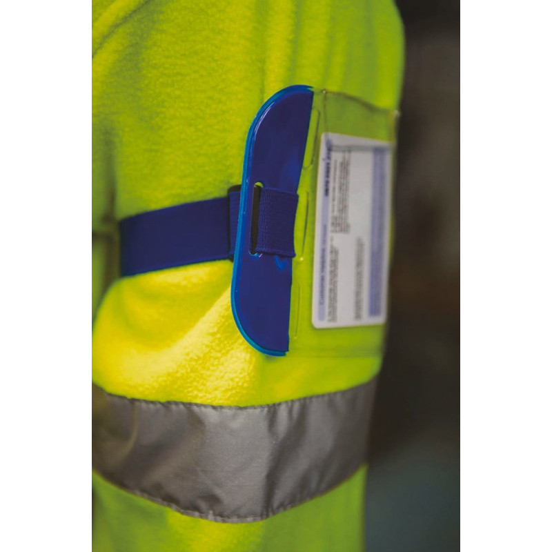 Professional, durable and waterproof ID arm bands. Adjustable self-matching colour elasticated straps. ID cards can easily slide in for clear and noticeable display. PVC ID pouch is suitable for digital printing. ID pocket can hold cards up to 110 x 65mm.