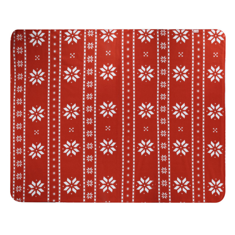 130x160 cm blanket made of soft RPET polyester, with an unique christmas design in red with white Christmas motifs. Made in soft and warm 200g/m2 fleece material with anti-pilling treatment. With RPET label and presented in an individual, white color cardboard box, with matching ribbon.RPET material is made from recycled plastic, thus promoting the reuse of plastic waste and helping the sustainability of the planet.