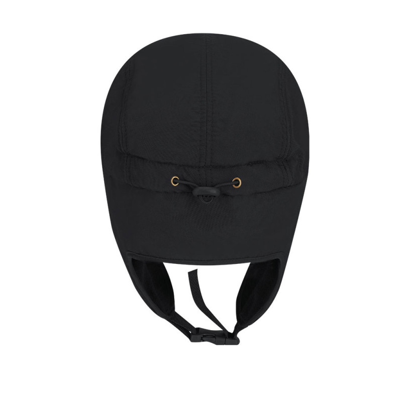 Cap with ear flaps and warm polar fleece interior. Includes elastic cord with adjustment accessory to fit different sizes and adjustable buckle closure at the chin.