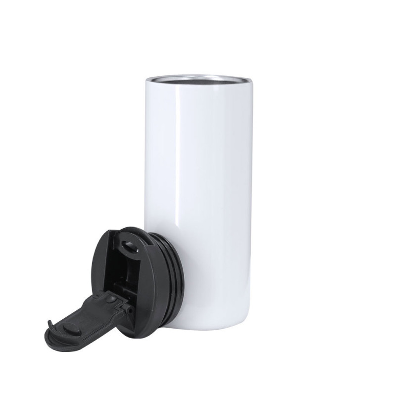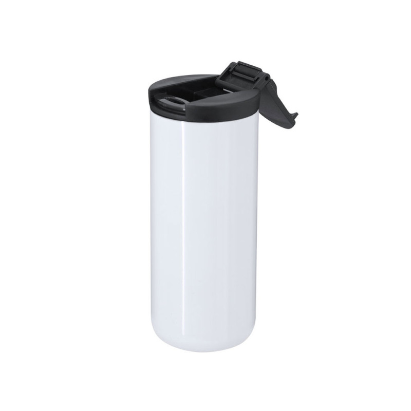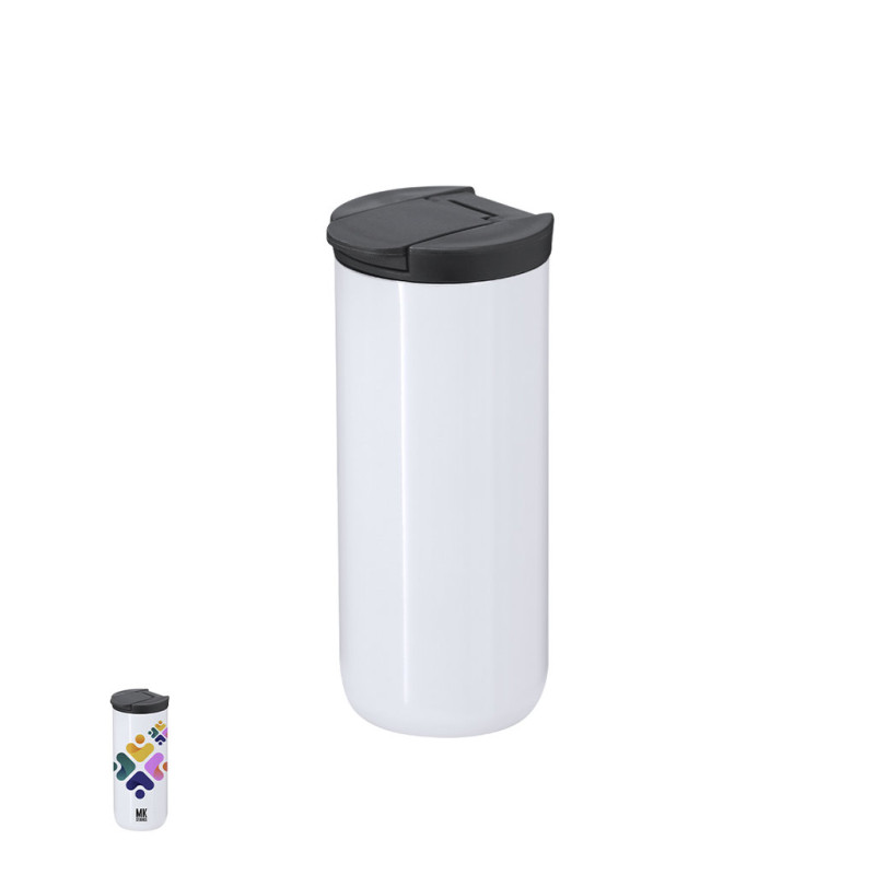 Thermal mug made of double-walled stainless steel with a capacity of 370ml. Specially designed for sublimation marking, finished in glossy white. Equipped with a black lid doser, designed to prevent leaks and BPA-free.