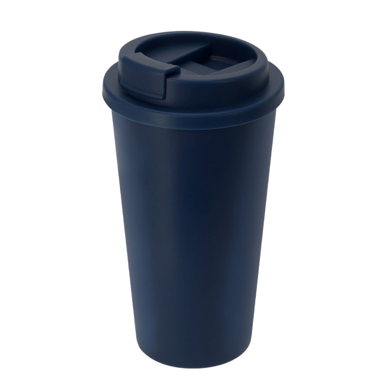 Thermal cup made of recycled PP and 450ml capacity. With double wall for better and longer lasting temperature preservation. Equipped with a dispenser in the lid, designed to prevent leaks and BPA free. PP Recycled is a recycled and highly recyclable plastic, highly resistant and suitable for a multitude of applications. Food Grade certified, ensuring safety when food comes into contact with the material used to manufacture the product.