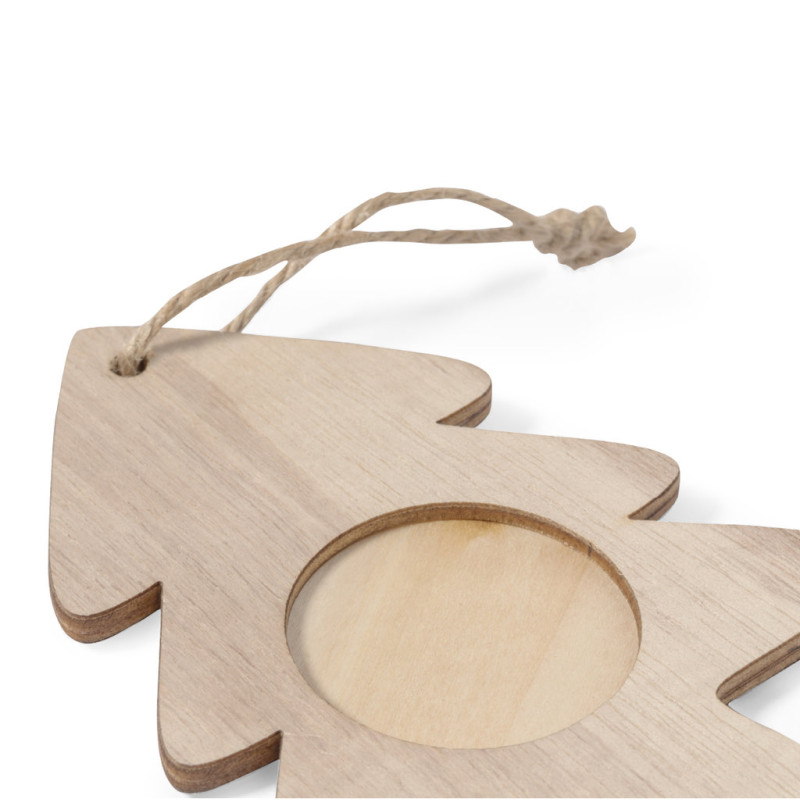Elegant Christmas ornaments with photo frame made of soft wood. Window for photographs in size 4x4 cm and hanging accessory in natural jute. Available in 3 original designs: Snowflake, Christmas Tree and Star. Presented in an individual recycled bag.Made with vegetable elements to promote the use of natural raw materials and reduce pollutant emissions.