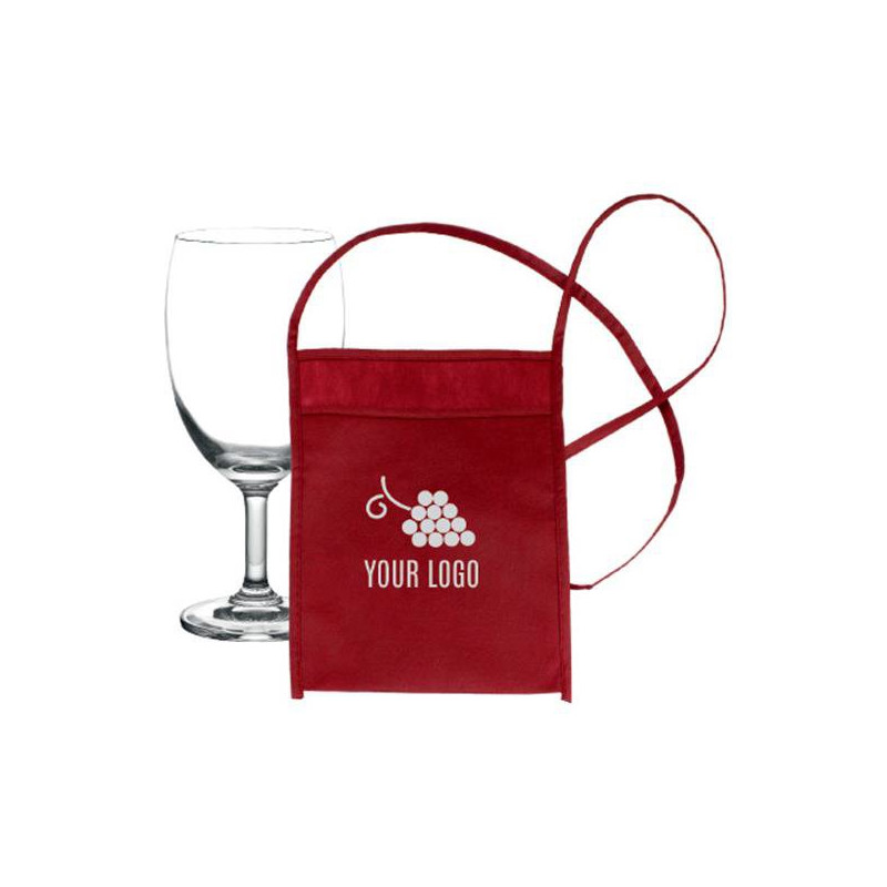 Multipurpose bag in TNT 80g. With a strap that allows you to wear it around your neck or on a crossbody, this everything bag is ideal for use at an event where you always need to have your objects at hand, whether it´s a contact card or a glass of wine.