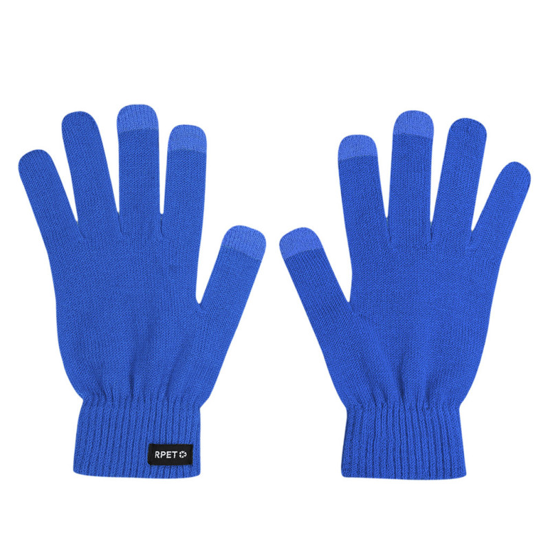 Gloves made of warm and soft RPET polyester fabric, for touchscreen devices. Featuring touchscreen functionality on the middle, index and thumb fingers in matching color. With RPET label.RPET material is made from recycled plastic, thus promoting the reuse of plastic waste and helping the sustainability of the planet.