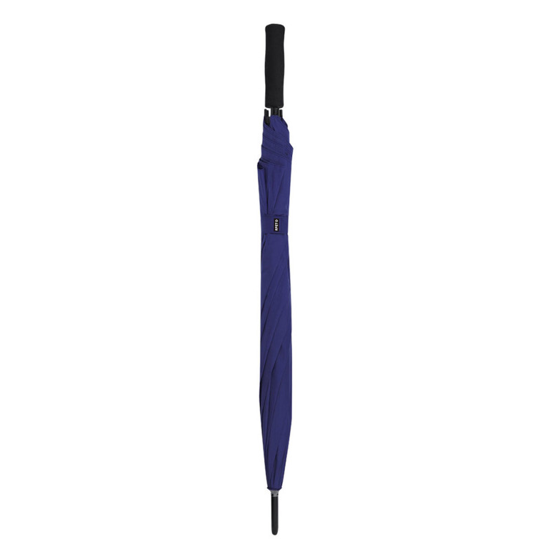 Windproof umbrella with a diameter of 120 cm, made from RPET 190T polyester material. With automatic opening and fiberglass ribs. EVA handle. The RPET material is made from recycled plastic, promoting the reuse of plastic waste and helping to sustain the planet.
