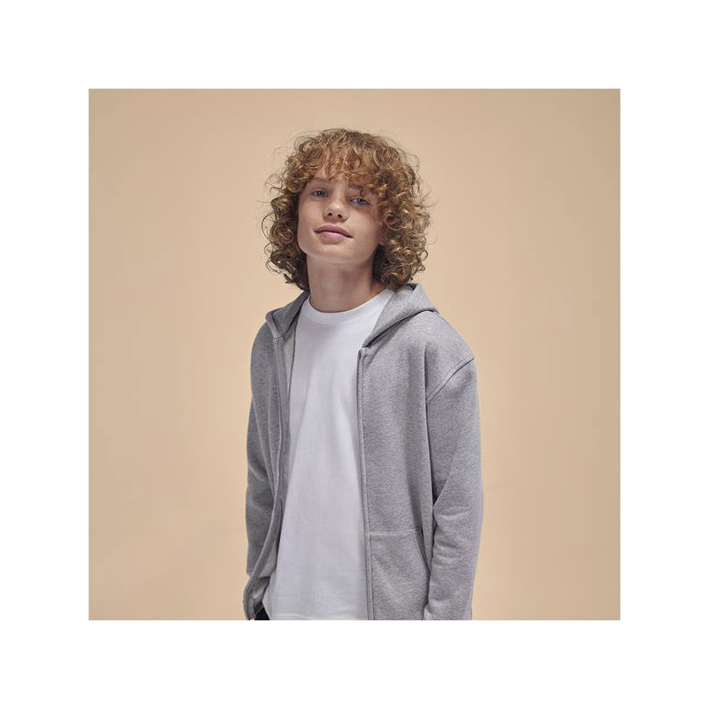 The B&C ID.334 Zip Hood /kids is the perfect sustainable choice for any child or teenager who loves comfort and style. With its modern, gender-neutral design, it´s ideal for both boys and girls, from infancy to adolescence. Its structure with a dropped shoulder and full closure creates a relaxed and functional look that is ideal for everyday use and will stand up to daily wear and tear. The 100% cotton face fabric is exceptionally suitable for printing and personalization, with a taggles finish on the neck to make the process even easier.With a hood lined in single-stitch knit for a perfect fit, no drawstring for added security, and strategically placed pockets for hand comfort. The 1x1 rib knit cuffs and hem with elastane ensure a firm, long-lasting fit. Available in 4 sizes (5/6 to 12/13 years) and 3 colors, it is ideal for school wear, teamwear and promotional merchandising.Made from 80% pre-shrunk ring-spun cotton (investing in Better Cotton) and 20% recycled polyester, the B&C ID.334 Zip Hood /kids contains an average of 7 post-consumer recycled PET bottles (550 ml), promoting sustainability practices. Like all B&C garments, it is the ideal option for large volumes, with the “B&C No Label” solution for easy customization and rebranding.