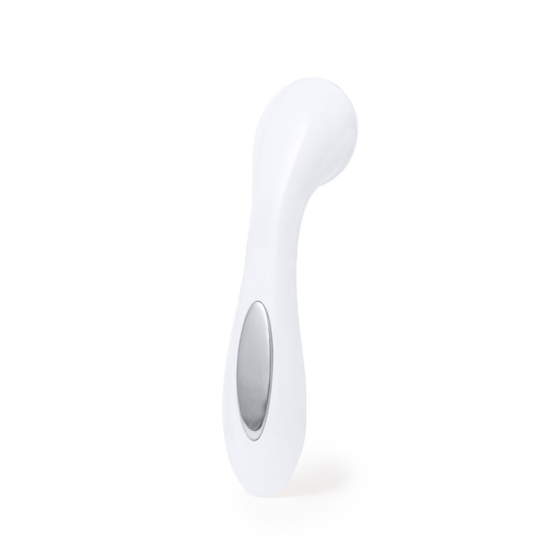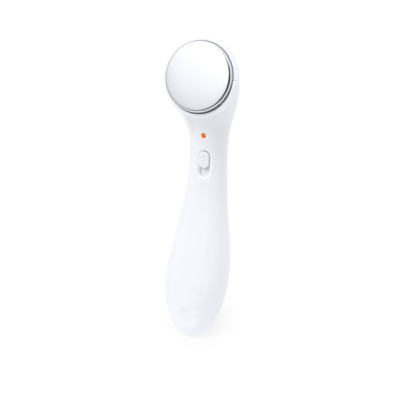 Electric facial cleanser by vibration, causing a pleasant massage with its flat base and helping to open the pores for a more effective hygienisation. With a possibility to choose between positive or negative flows, and powered by a button cell battery (included). Presented in a kraft design box.