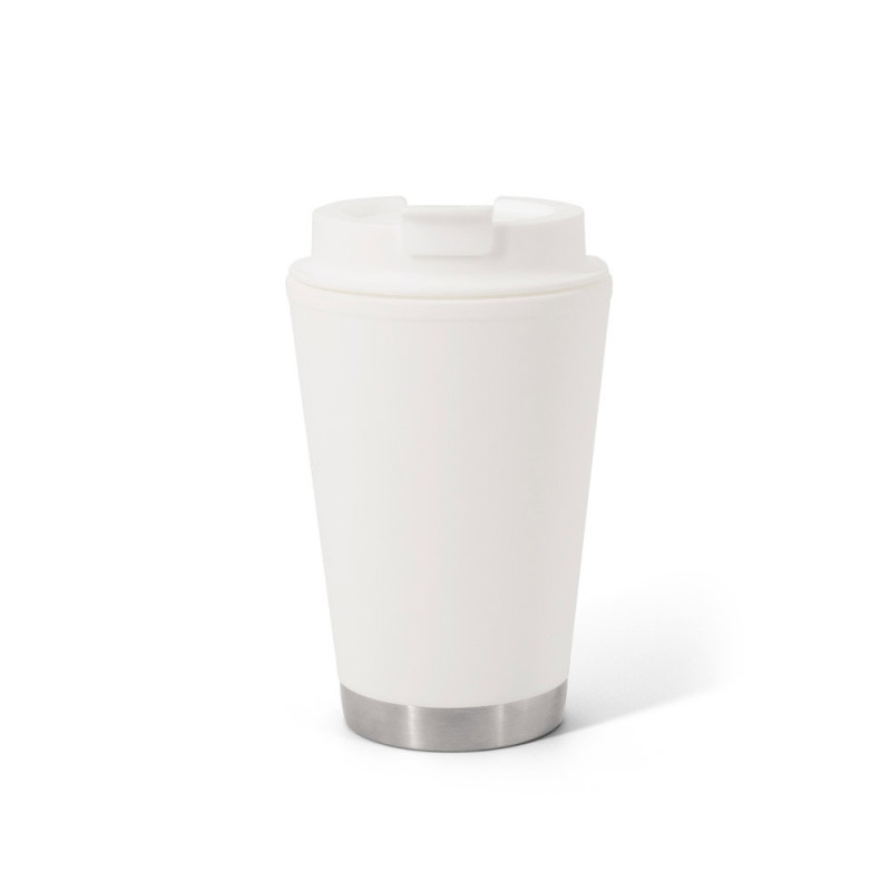 Double-walled, leak-proof PP travel cup. The lid features a flip-top system to keep your beverage safe. Capacity up to 410 mL. ø90 x 145 mm