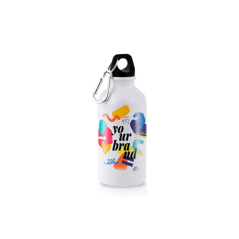 Aluminum bottle, 400 ml for sublimation with carabiner. On average, 60% of our body is made up of water. For this reason, it is essential that you stay hydrated wherever you are. To always accompany you, this gift presents itself as a reusable solution, easy to transport and without major inconvenience. The screw cap does not leak. The metal carabiner makes transport easier. Customize this freebie and stay hydrated.